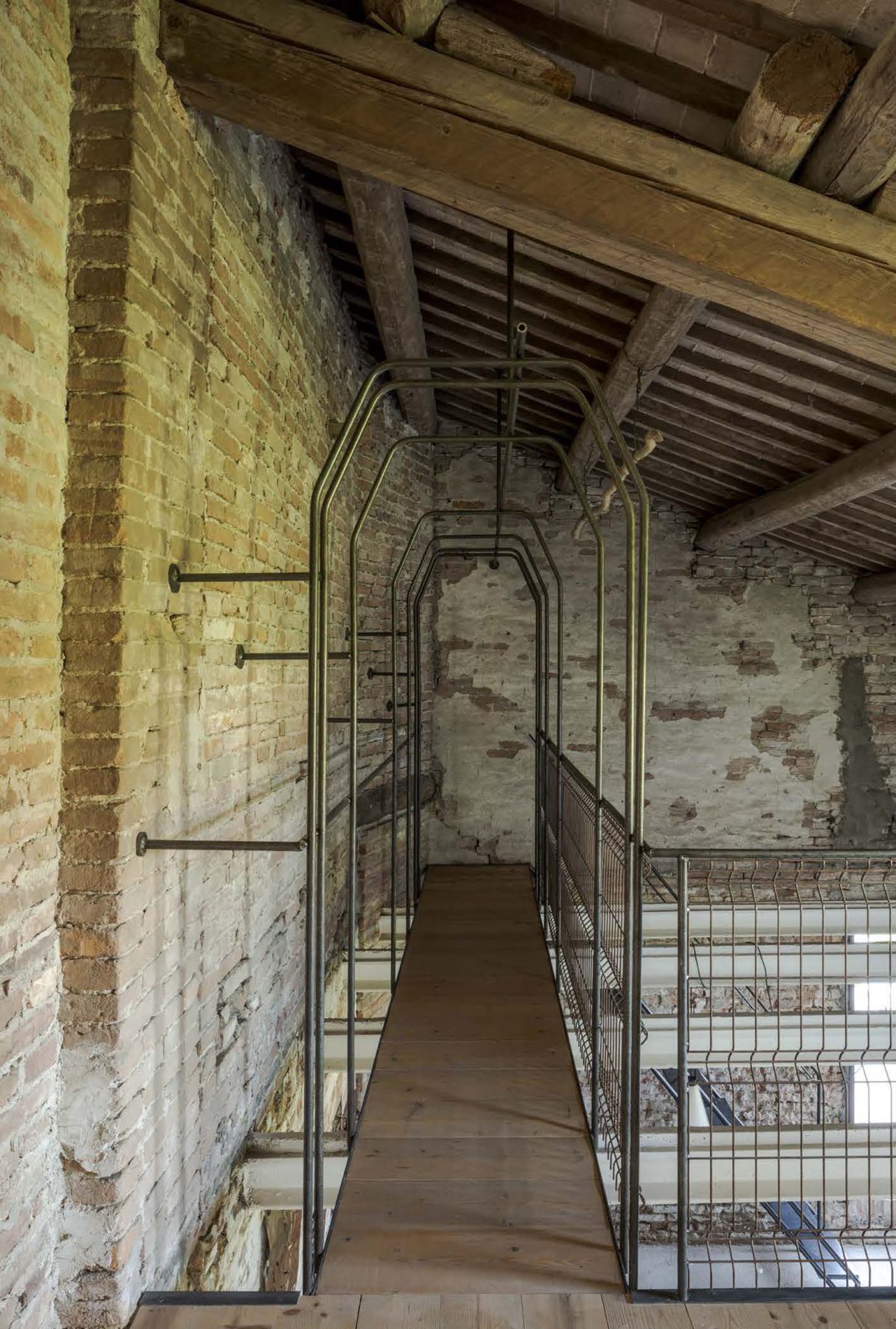 Special care was devoted to the treatment of existing surfaces. Irregular plasters, brick walls, wooden doors, and original floors were preserved, maintaining their ability to narrate the passage of time. Where interventions were necessary, restoration was carried out in an almost calligraphic manner: precise, minimal gestures capable of restoring continuity without overpowering the whole.