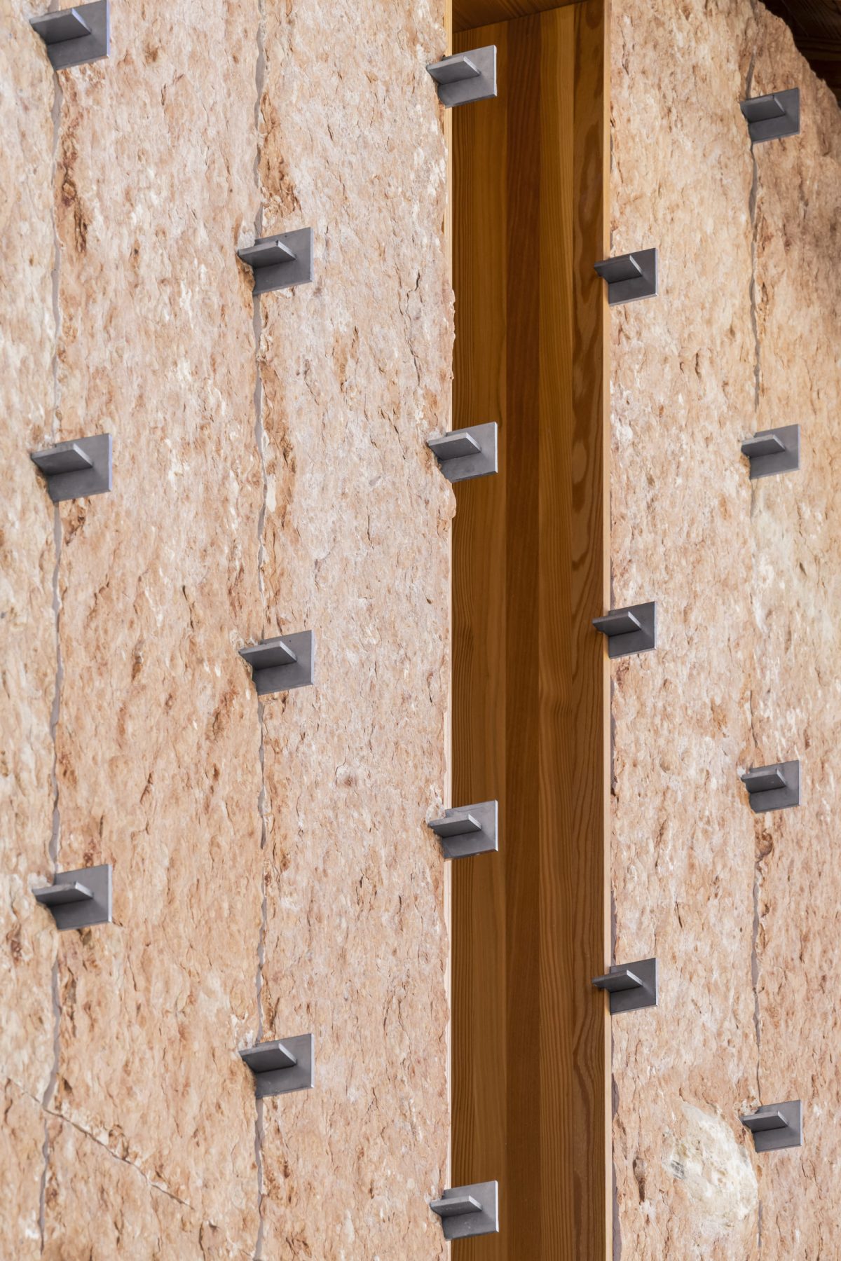 The project explores a construction system based on structural repetition, creating an anti-seismic framework where the wooden structure counteracts the thrust of the stone walls, which in turn brace the timber framework.