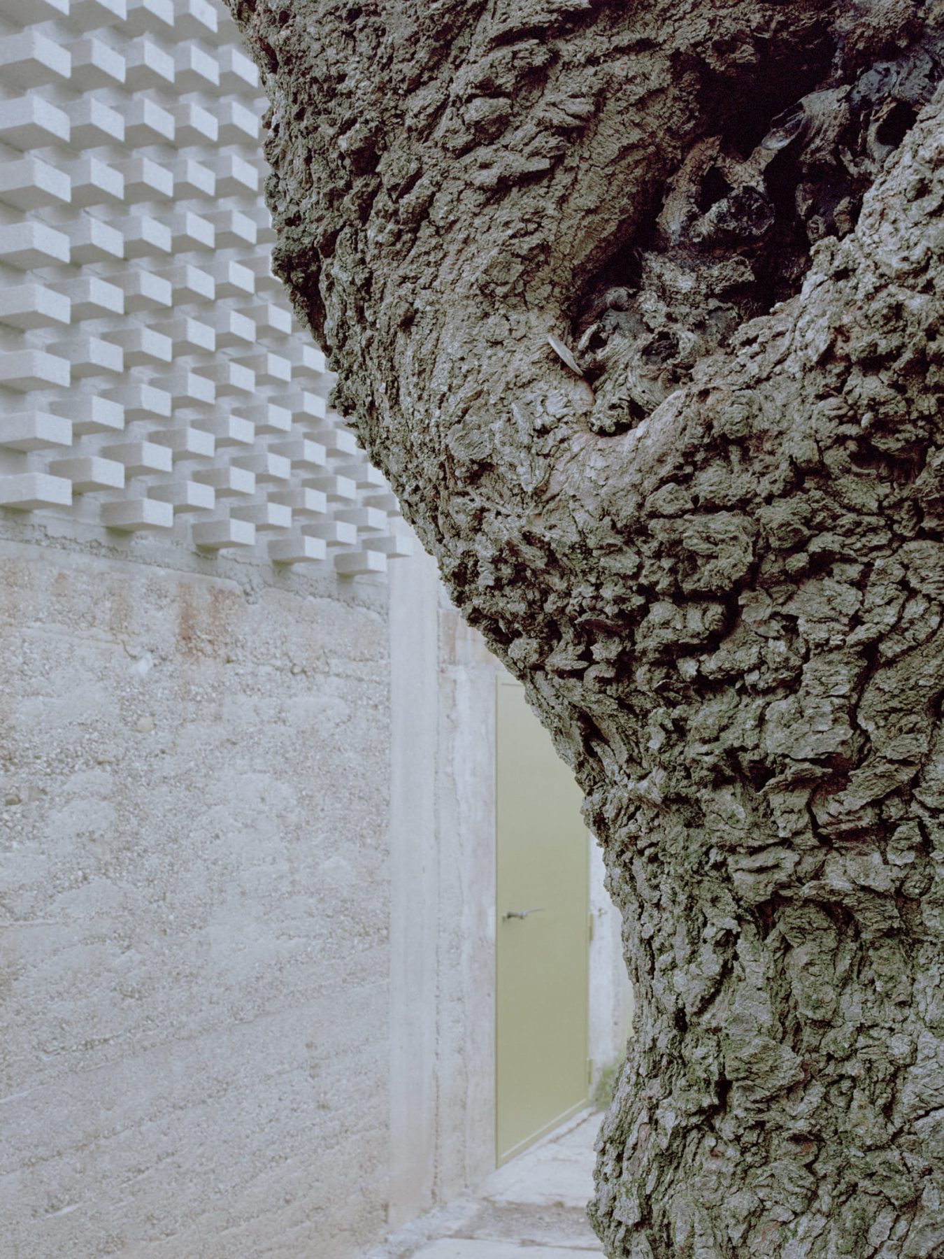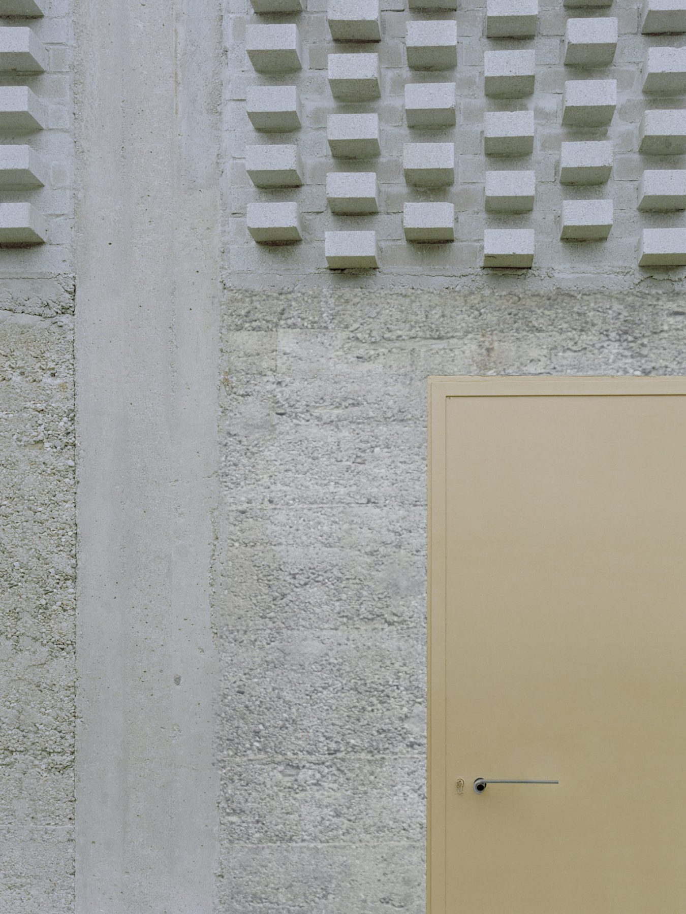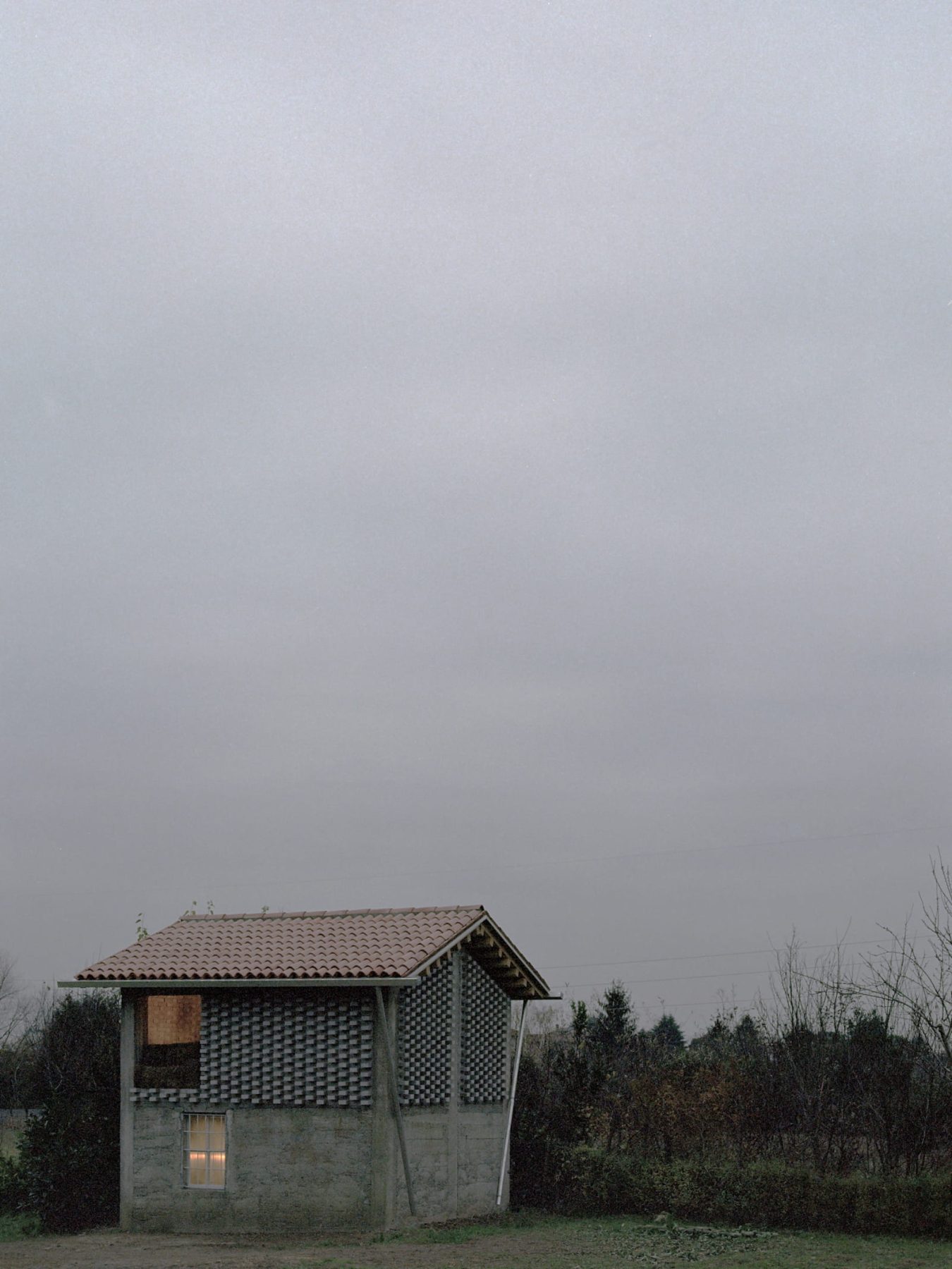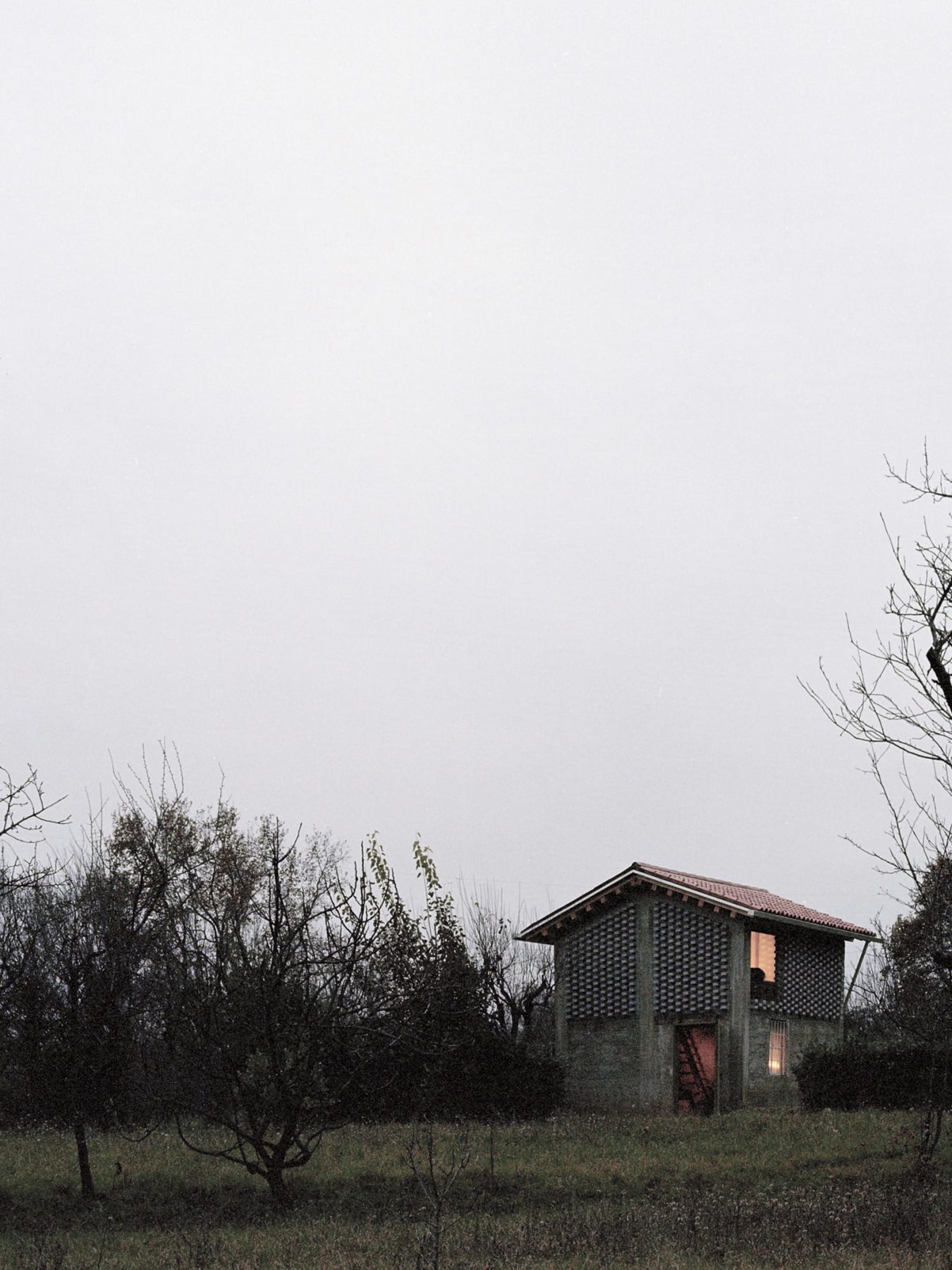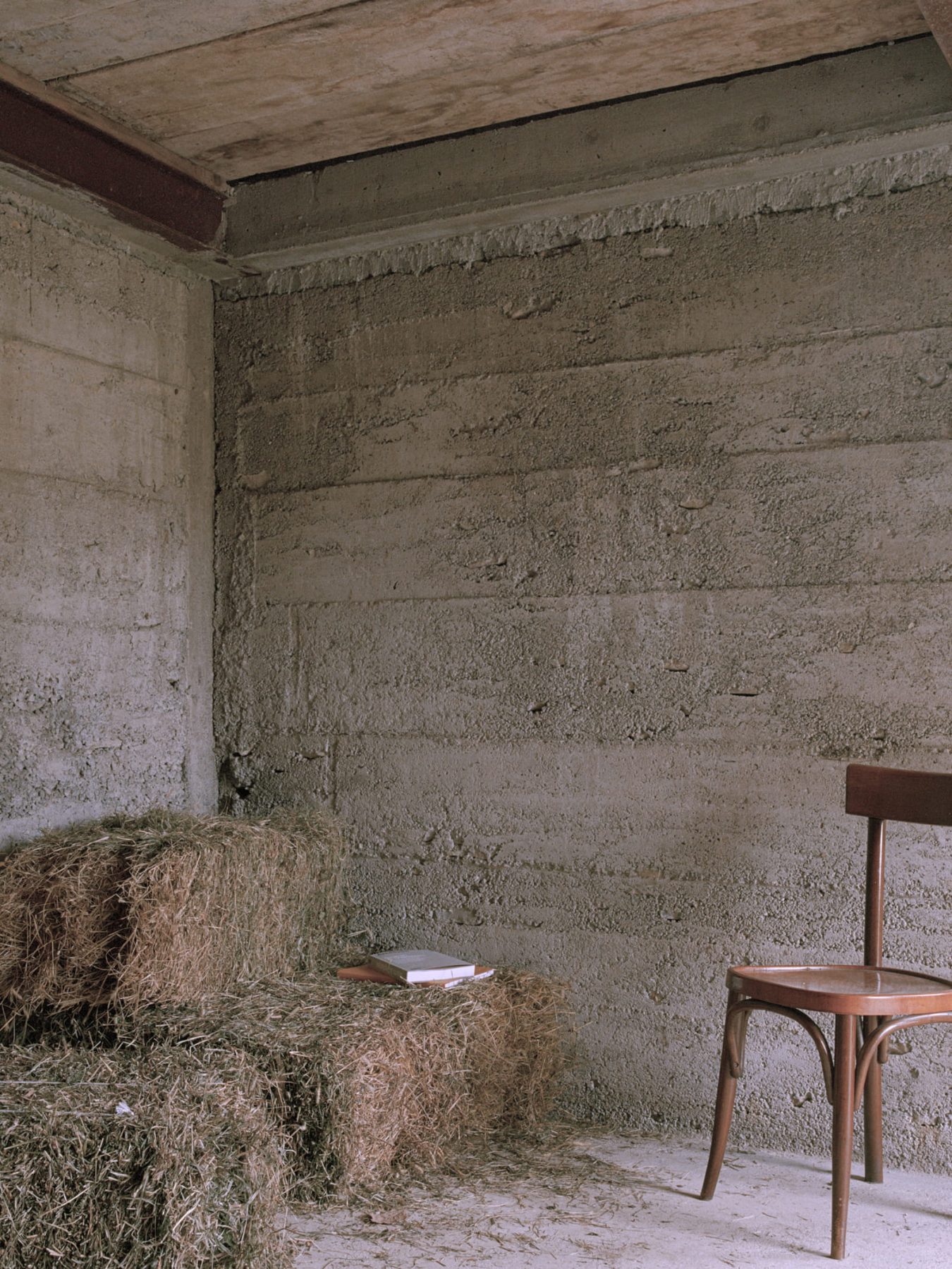 The upper floor remains devoted to agricultural use, functioning as storage for tools and small dried hay bales. Unlike traditional barns, which often feature permeable or open façades to allow for hay drying, this building did not require such conditions. Instead, the cement brick walls reinterpret, in a contemporary manner, the perforated masonry historically found in rural Lombard farm buildings—solid, pragmatic, and expressive in their restraint.
