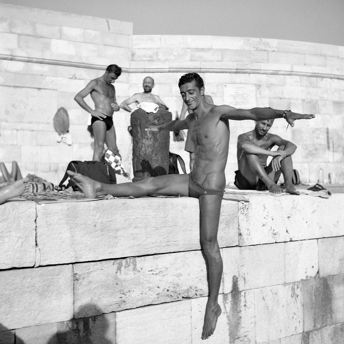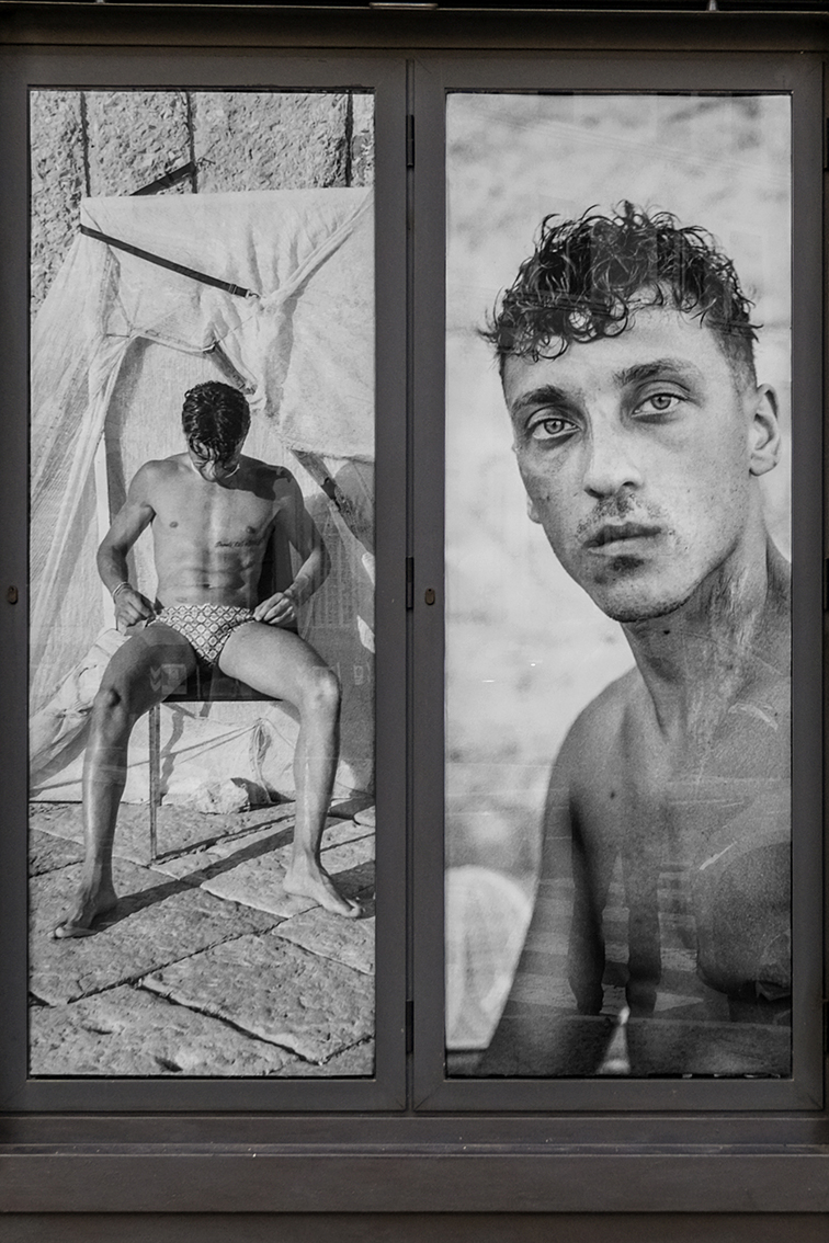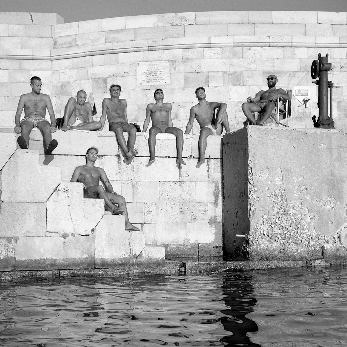 On the occasion of the opening, the exhibition Lanterna Beach: I volti del Braccio (The Faces of the Braccio) by photographer Mariano Doronzo, curated by Luigi Crea, was presented. Launched in 2015, the project portrays the daily life of the “lanterniani” — a community that gathers year-round on the Braccio pier in Barletta to share sun and sea in a place that’s technically off-limits. Charged with intensity, Doronzo’s images document this collective ritual with an anthropological gaze, exploring the relationship between the male body, the sea, and concrete, while offering an authentic, non-stereotypical representation of Southern Italy. Celebrating the beauty of male bodies, the work opens up a unique vision of an isolated community now revealed to a wider audience.