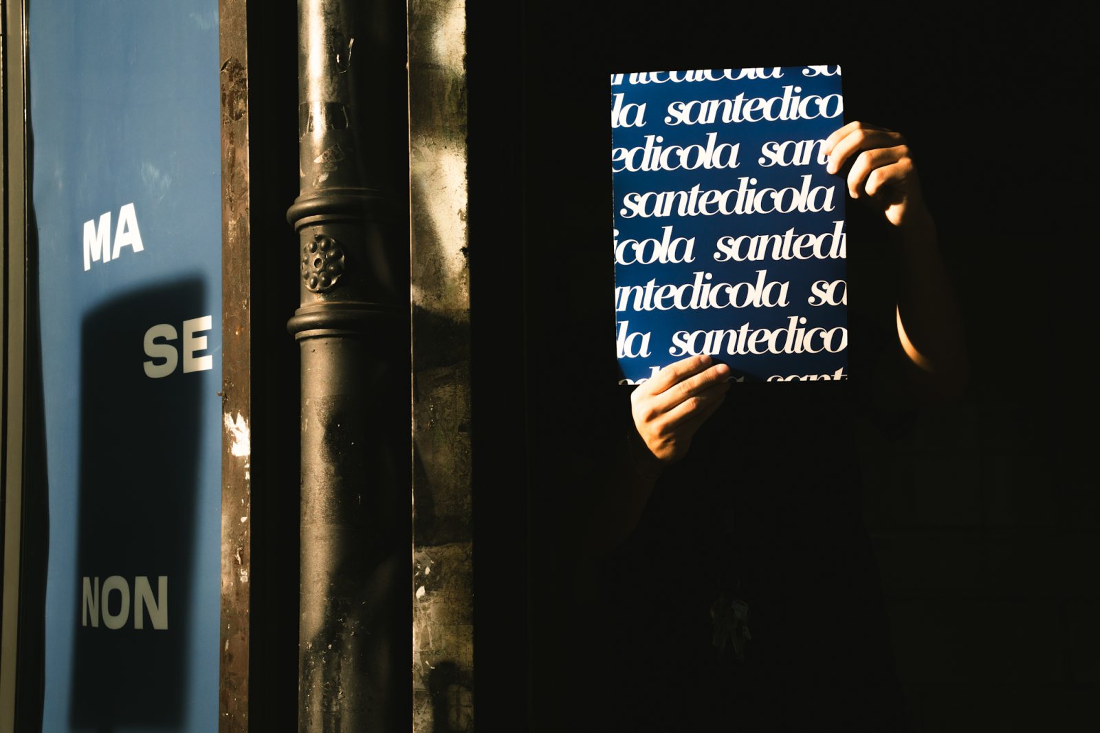 The brand positioning and visual identity of SANTEDICOLA were developed with brand designer Jonathon Dominic Spada, who drew inspiration from the iconography of votive shrines — small urban altars suspended between everyday life and symbolism — to capture the complexity and sacredness of the project.