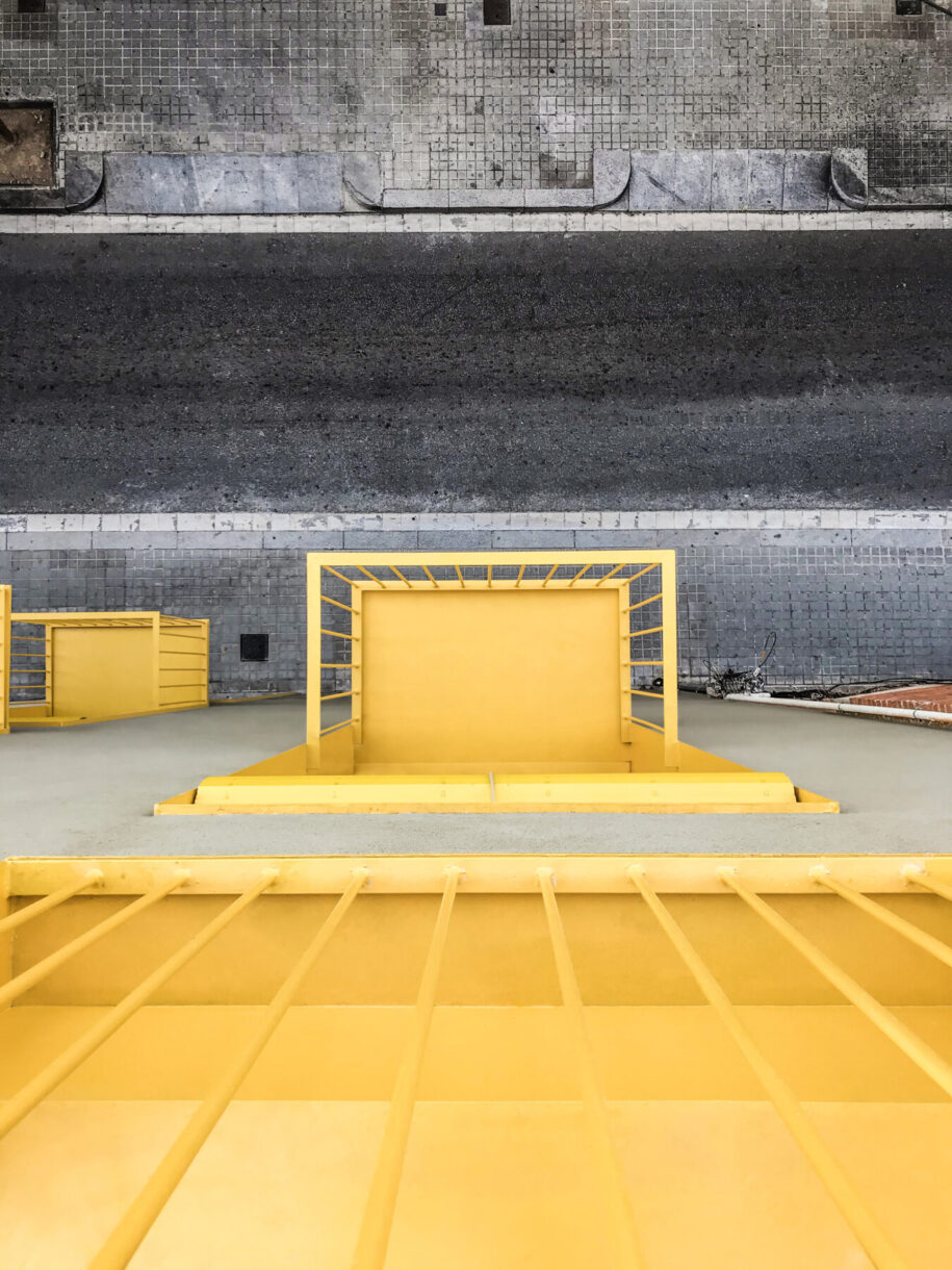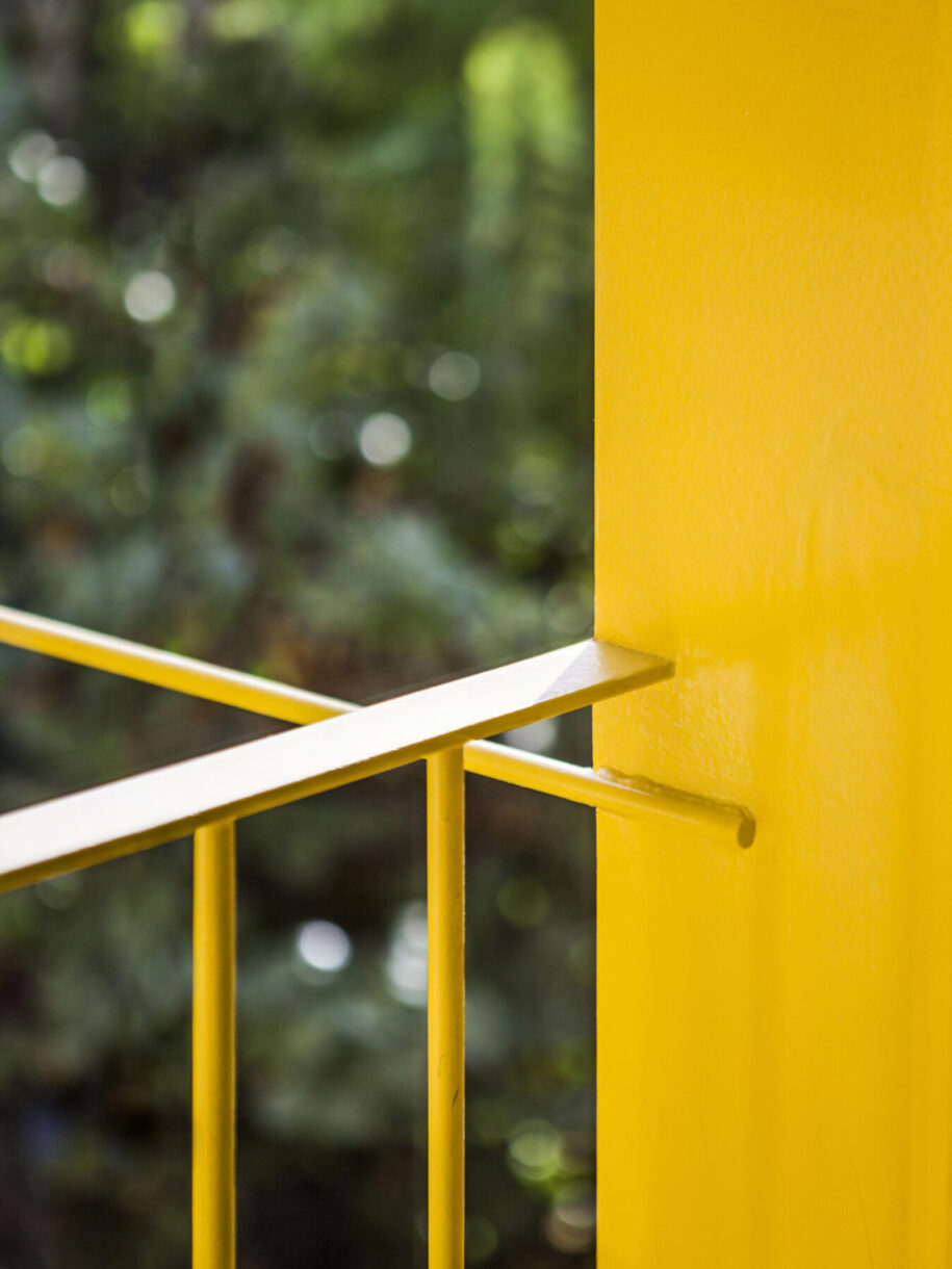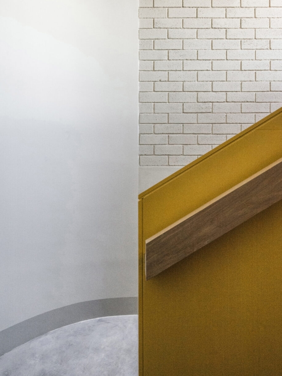 In this sense, the façade facing the street is made up of the usual elements and proportions in the neighbourhood: balconies, blinds, baseboards, stucco, etc. But we give the facade a twist in its details and the simplicity of its elements, with the peculiarity that one of these elements escapes from the perimeter of the façade. The effect is, on the one hand, to tie up the neighbouring lot, which is the only one on the street that does not comply with the rules of “good neighbourliness”, as it has one more floor than is allowed.