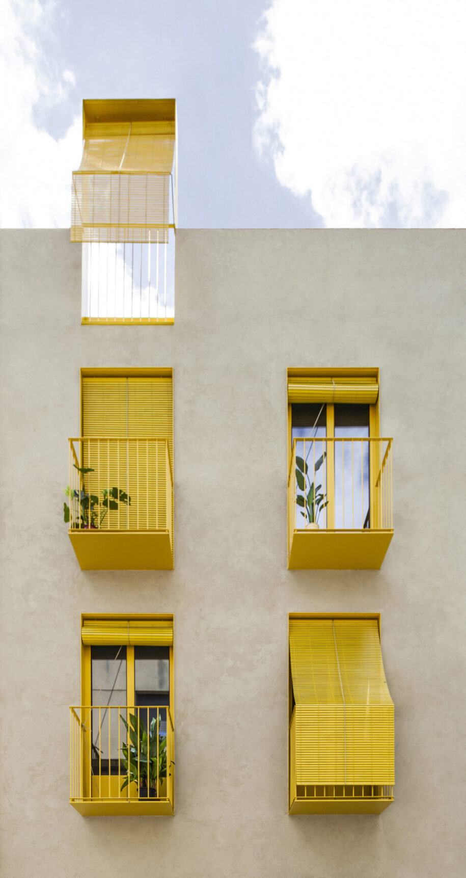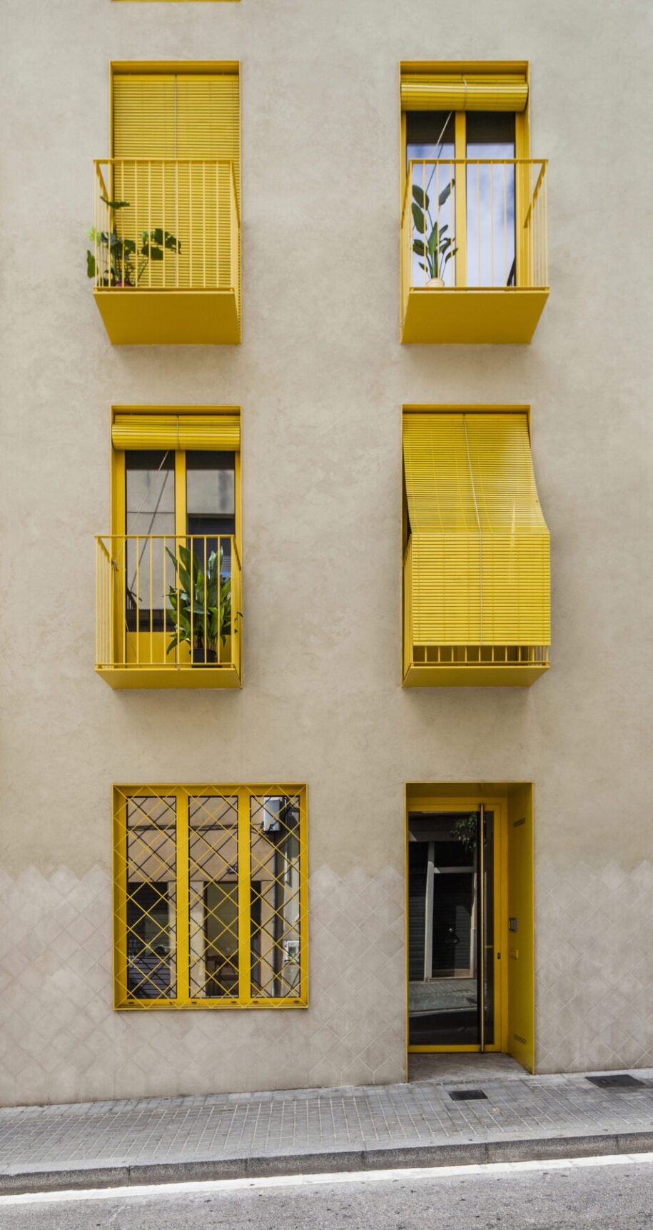 Anna & Eugeni Bach completed SEVEN LIVES residential building in Barcelona, Spain consisting of three tiny apartments that can be inhabited in seven different ways, hosting seven different lives and seven windows as well conserving, at the same time, the character of the neighbourhood from a contemporary and playful point of view.