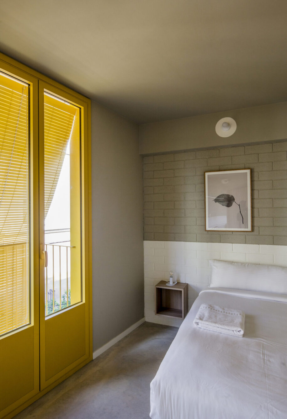 With this solution, we intend to provide a certain indeterminacy in the use of these spaces. They can be set up as a traditional home, with the placement of a double room on one side and a living room on the other, or they can provide for a shared home in the style of a student flat, with two symmetrical spaces.