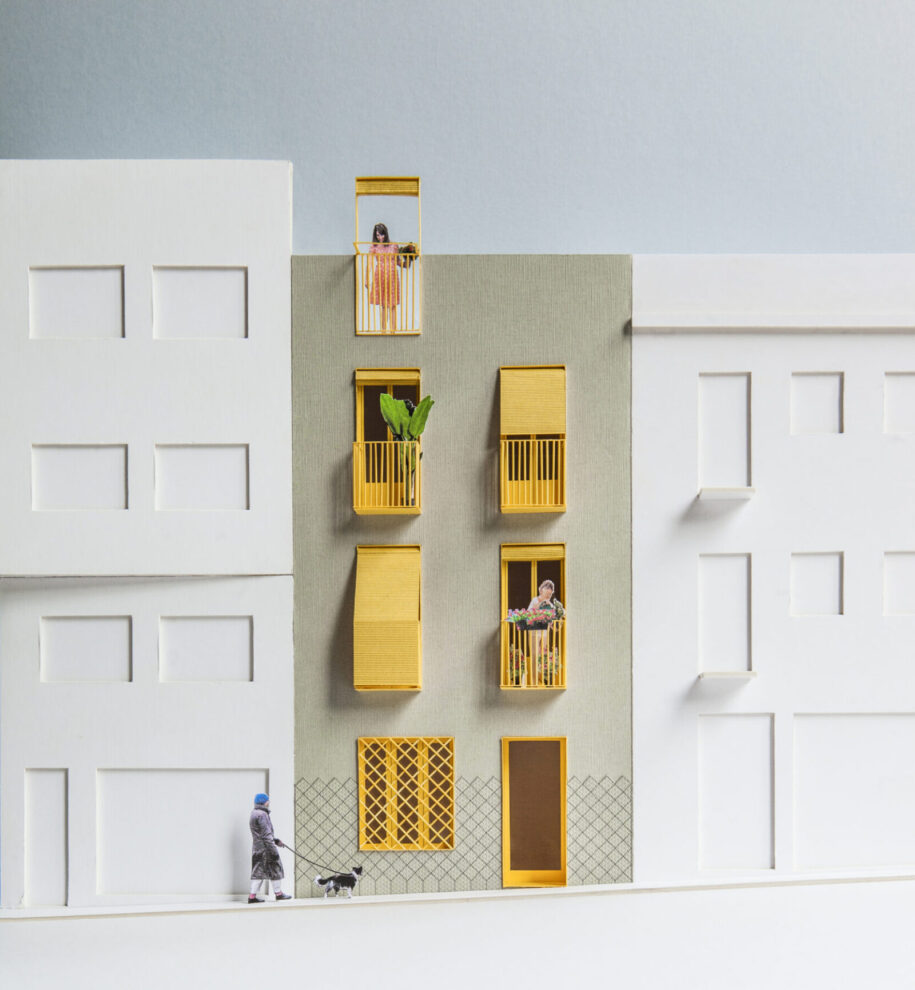 The project consists of a small block of three tiny apartments on a plot between established buildings in the old centre of the Horta neighbourhood in Barcelona. Our first reflection in acting in this sort of urban environment, so characteristic of the city, is to design a proposal that both conserves the character of the neighbourhood while doing so from a contemporary perspective.