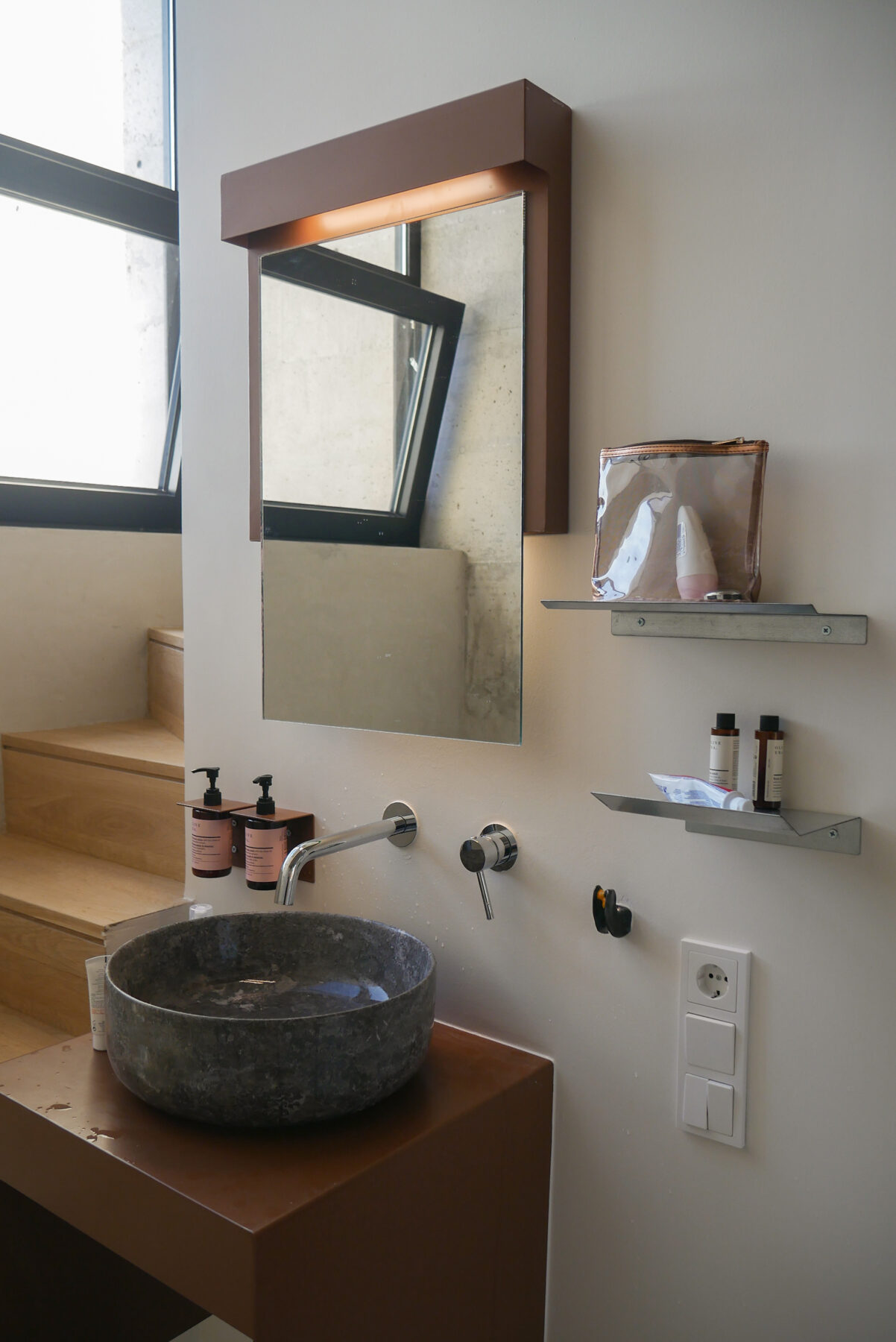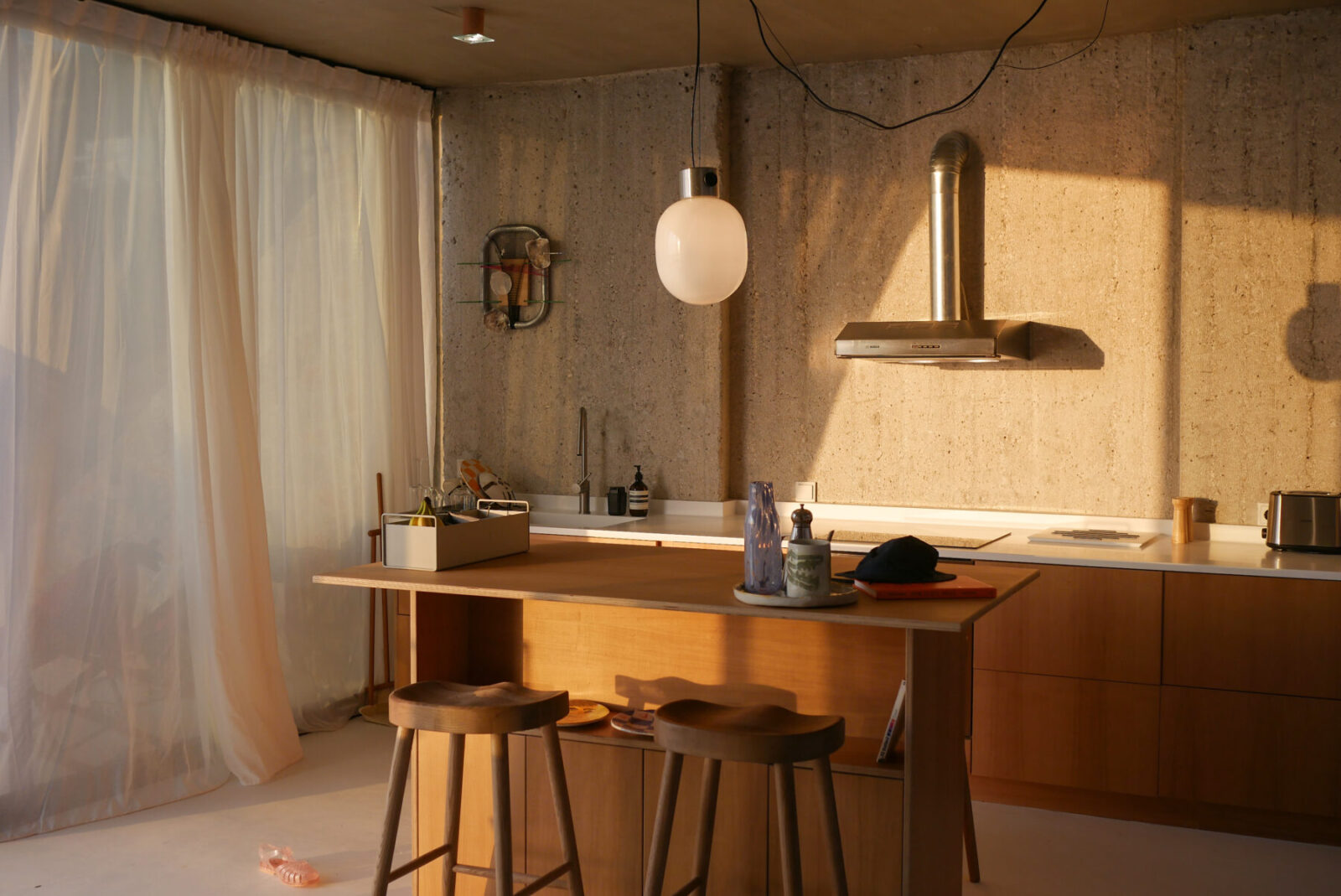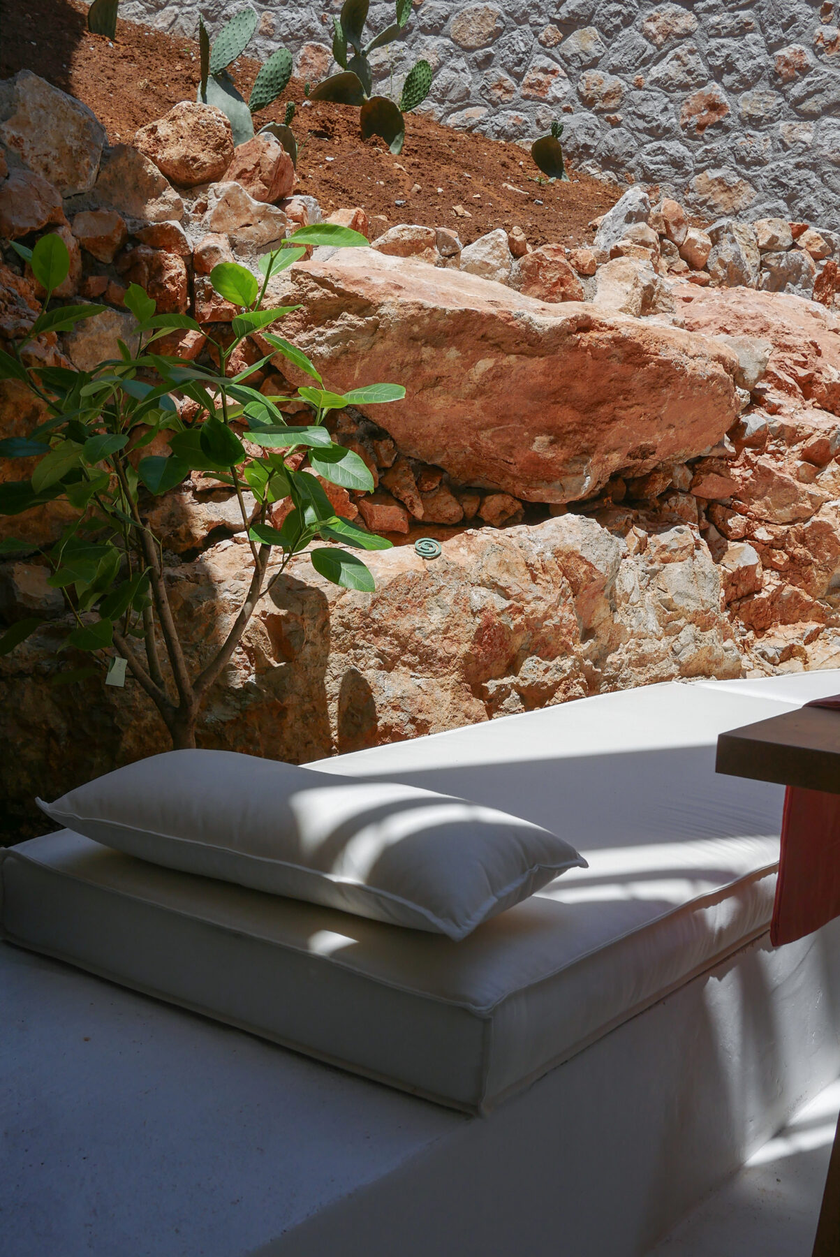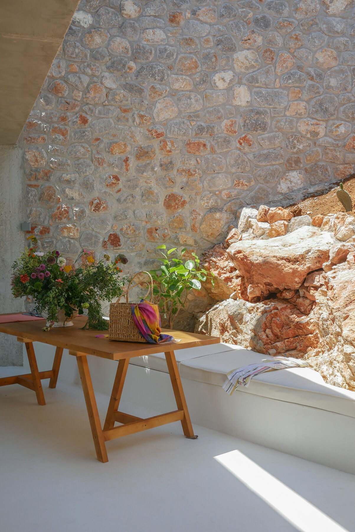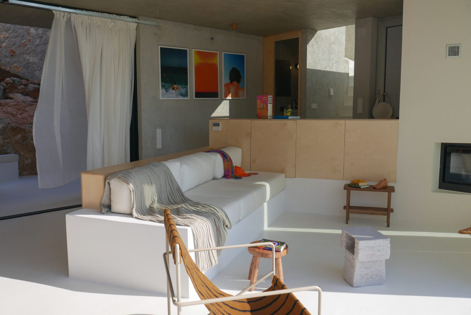 Μέσα από την διαπλοκή ανοικτών χώρων με θέα τη θάλασσα, χώρων απομόνωσης ανάμεσα σε μεγάλα δοκάρια αλλά και σκαμμένων αυλών, δημιουργείται ένα συνθετικό βάθος αντίστοιχο με αυτό που χαρακτηρίζει την κατοίκηση ως πράξη, από την συνάθροιση, μέχρι τη φροντίδα του σώματος και τη ρέμβη της θάλασσας.