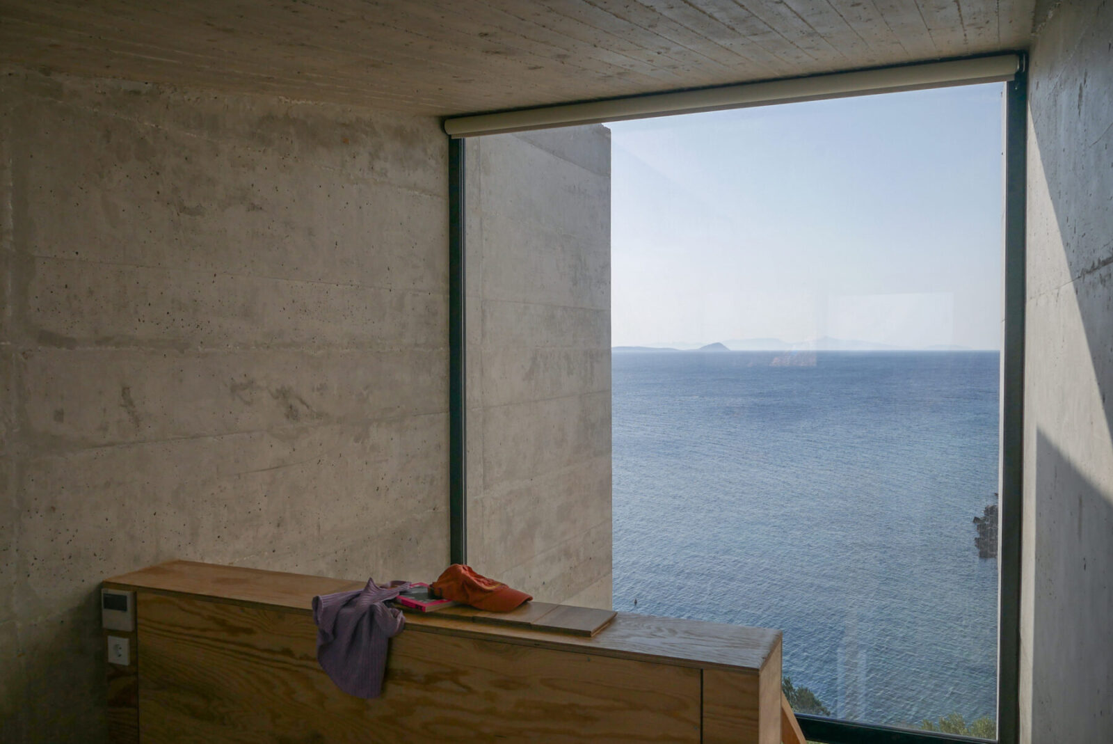 Η σύνθεση, αφού προσπάθησε να διαχειριστεί τον περιορισμένο χώρο του οικοπέδου, απέφυγε την κλίμακα της κατοικίας και επιχείρησε -οικειοποιούμενη τη μεγάλη κλίμακα των υποδομών- να συνδιαλλαγεί απευθείας με το τοπίο, σκηνοθετώντας μια απομόνωση που θα μας φέρει πιο κοντά στη θάλασσα.