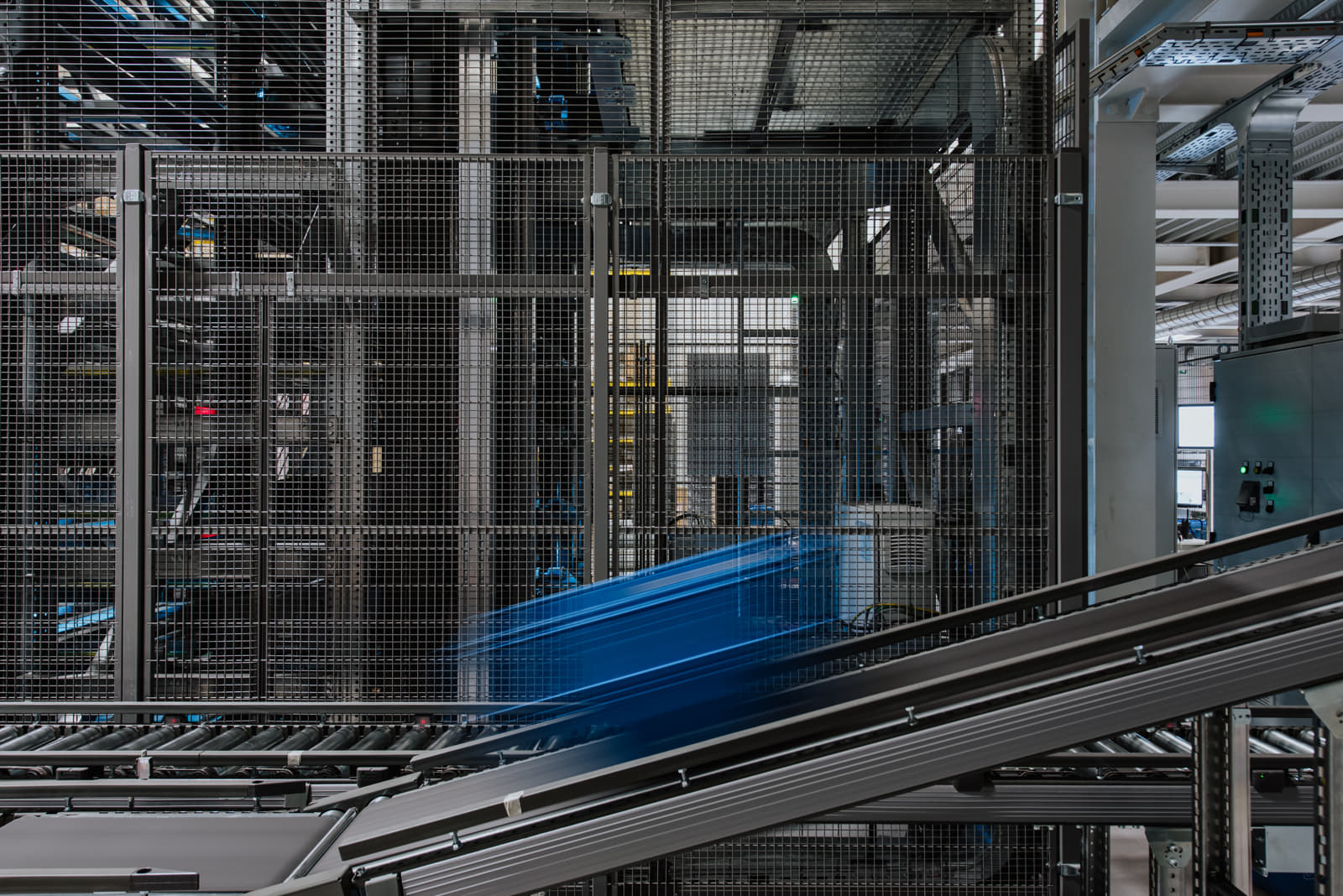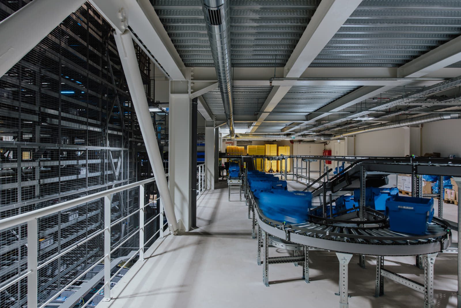Starting point of the design process was the optimal placement of the massive robotic logistics system, which is crucial for the company’s operation, in a large building shell.
