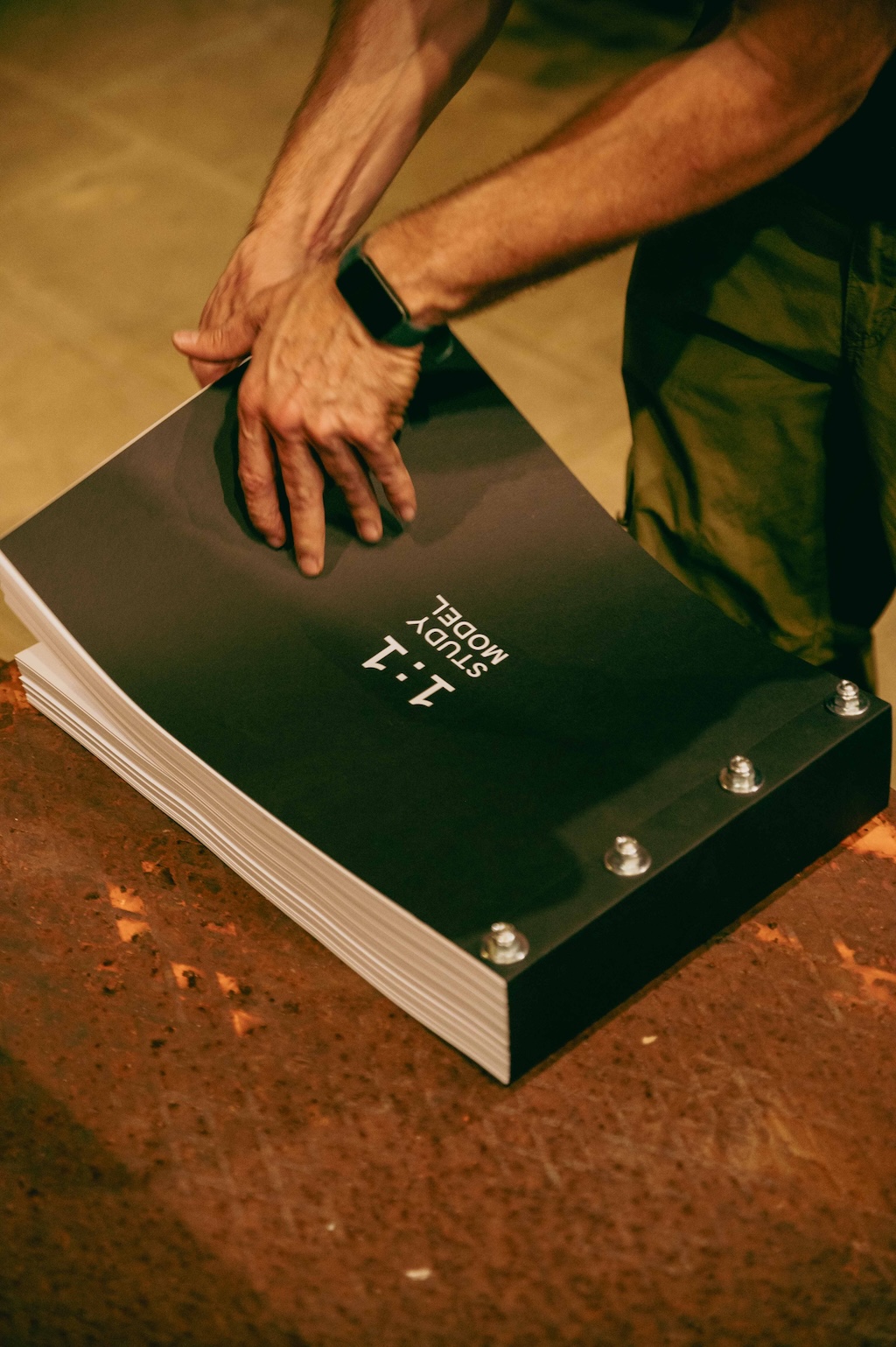 Numerous detail sketches and a selection of Simone Bossi’s extensive photographic work offer multiple perspectives on the project. Another section is devoted to AMAA – Ways of Seeing, a photographic series realized with Polaroid throughout 2025, illustrating the studio’s gaze upon its own intellectual and sensorial space — often directed toward construction sites. The exhibition concludes with Process Diary, a monumental 900-page volume gathering site visits, notes, exchanges with collaborators and professionals, sketches, and daily observations related to 1:1 Study Model: a living archive available for consultation while seated on the 003 Chair, designed by AMAA in 2025.