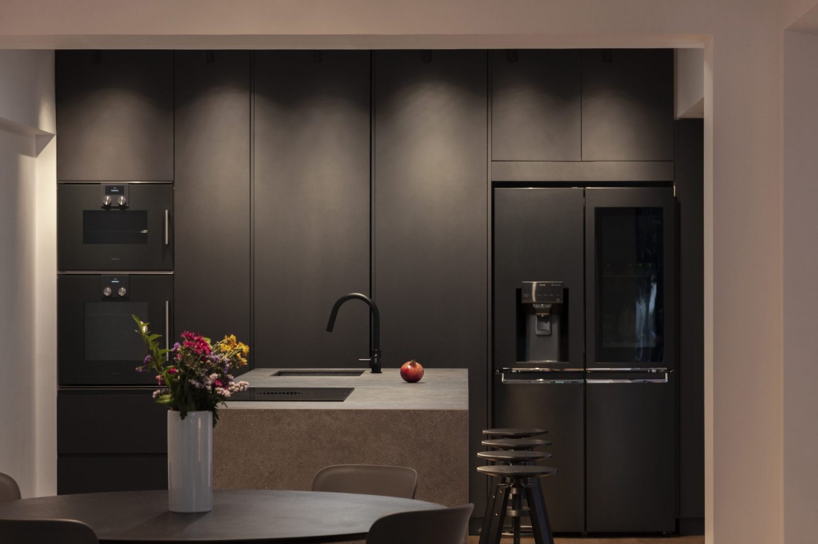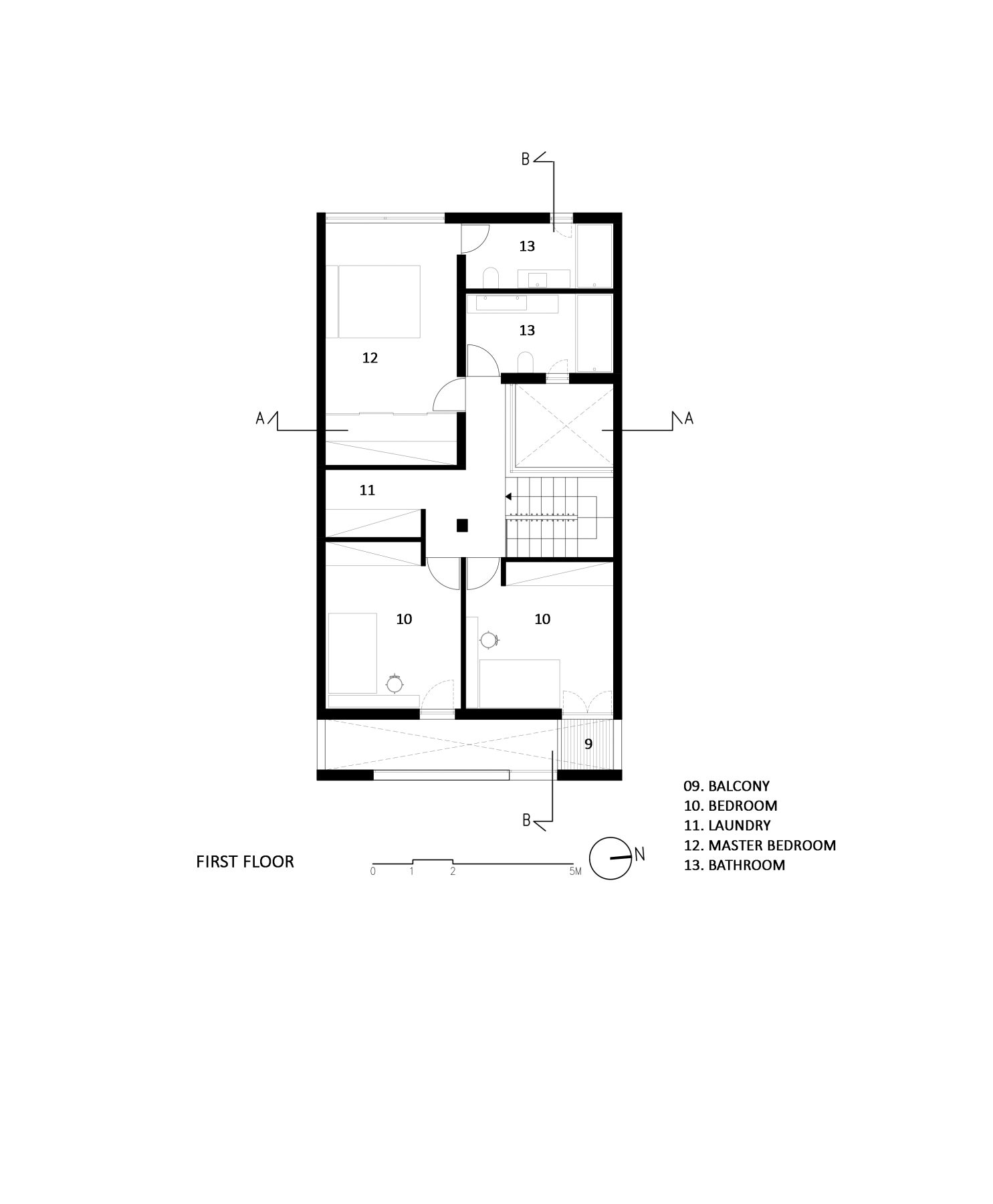 The design pivots around boundaries and intermediate spaces, structuring the house through two central atria that shape both lived experience and built environment. These voids enhance the building’s bioclimatic performance while transforming it into a true home—a place for gathering and spiritual exchange, a place where mundane everyday life poetically unfolds.