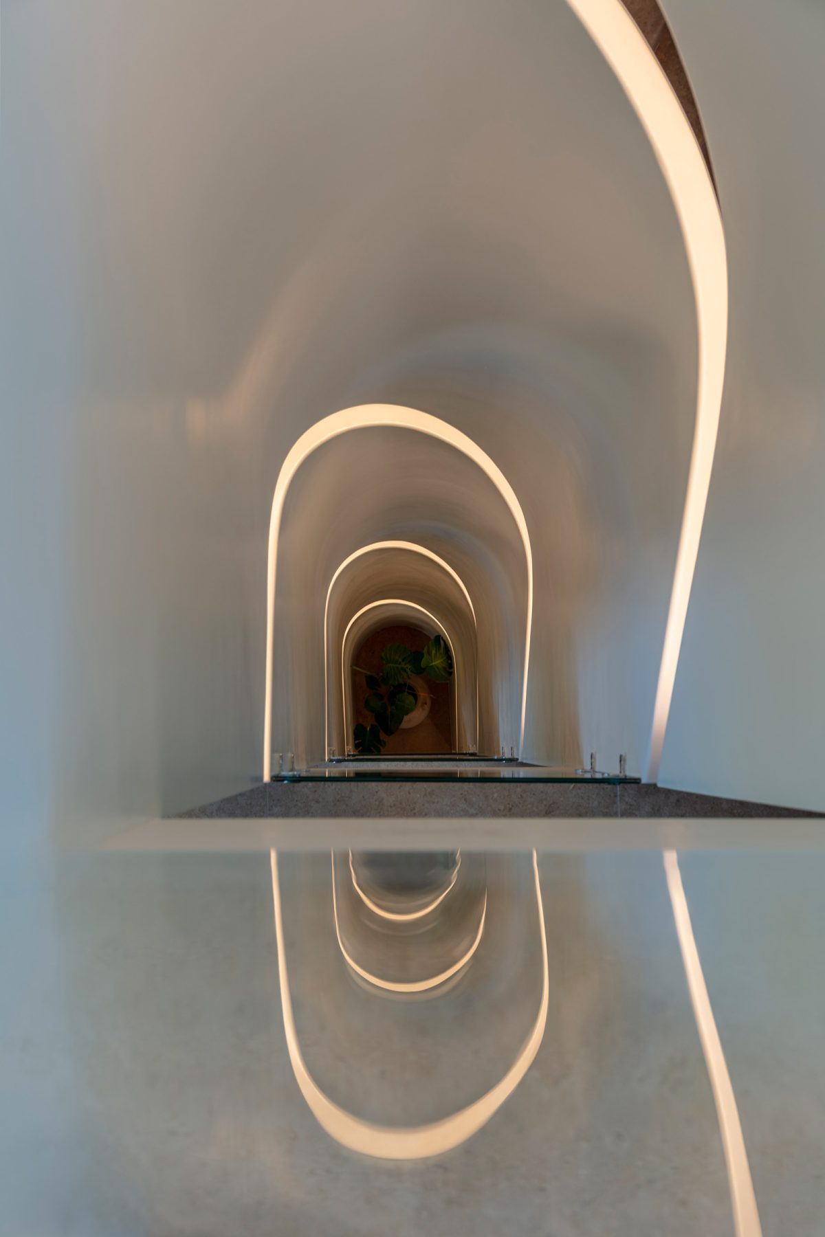 Οι υπαίθριοι χώροι και οι εξωτερικές κλίμακες προκύπτουν μέσω αφαίρεσης από τον κύριο όγκο, αποδίδοντας στο κτίριο έναν έντονα γλυπτικό χαρακτήρα. Η επιλογή του λευκού ως κυρίαρχου χρώματος ενισχύει την καθαρότητα της ογκοπλασίας, ενώ οι φυτεμένες επιφάνειες και τα κενά διαμορφώνουν δυναμικές όψεις που αντανακλούν τη συλλογική διάρθρωση του έργου.
