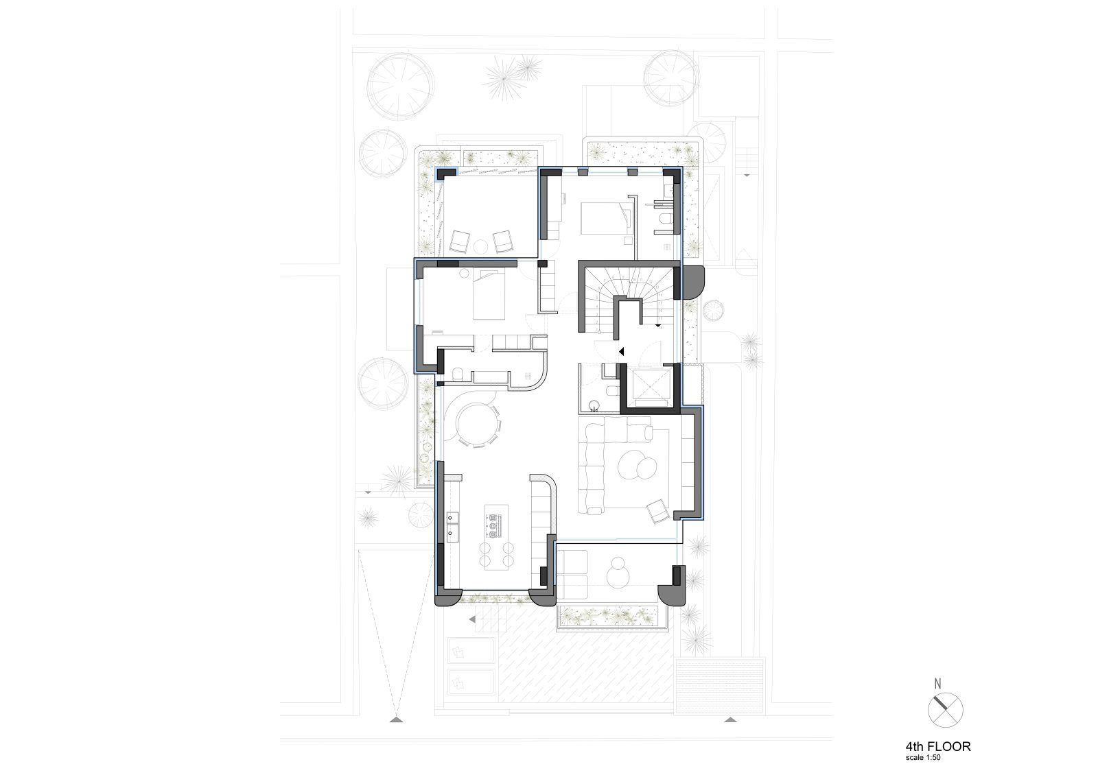 Following the studio’s overarching style which favours a strong relationship between indoors and outdoors, the home was conceived to connect its users with their surroundings. This is supported by large openings which allow glimpses of greenery from every room; dedicated, flexible spaces for resting and socialising, as needed; and plenty of sunlight that ensures life within is in sync with the sun’s journey throughout the day and the body’s circadian rhythm.