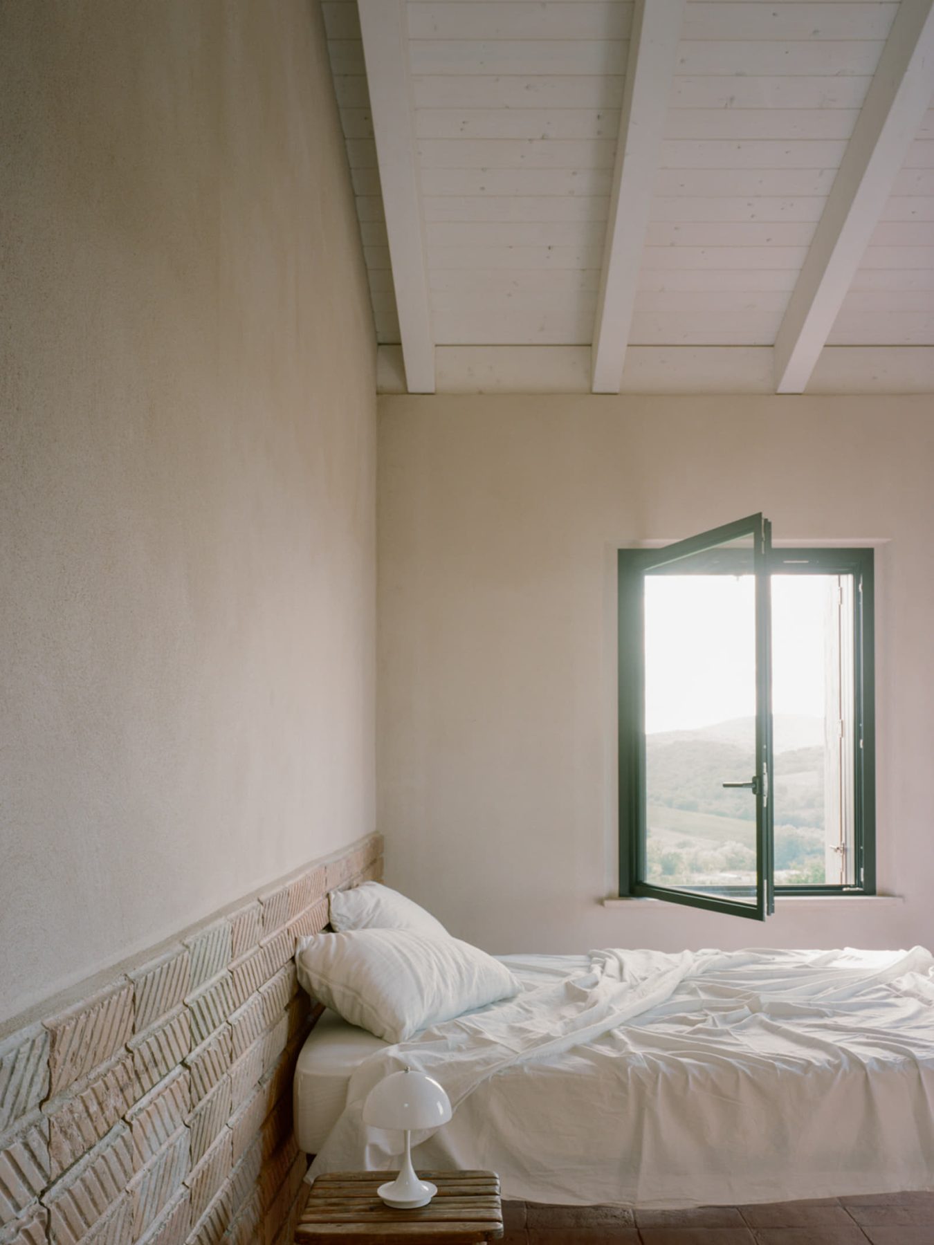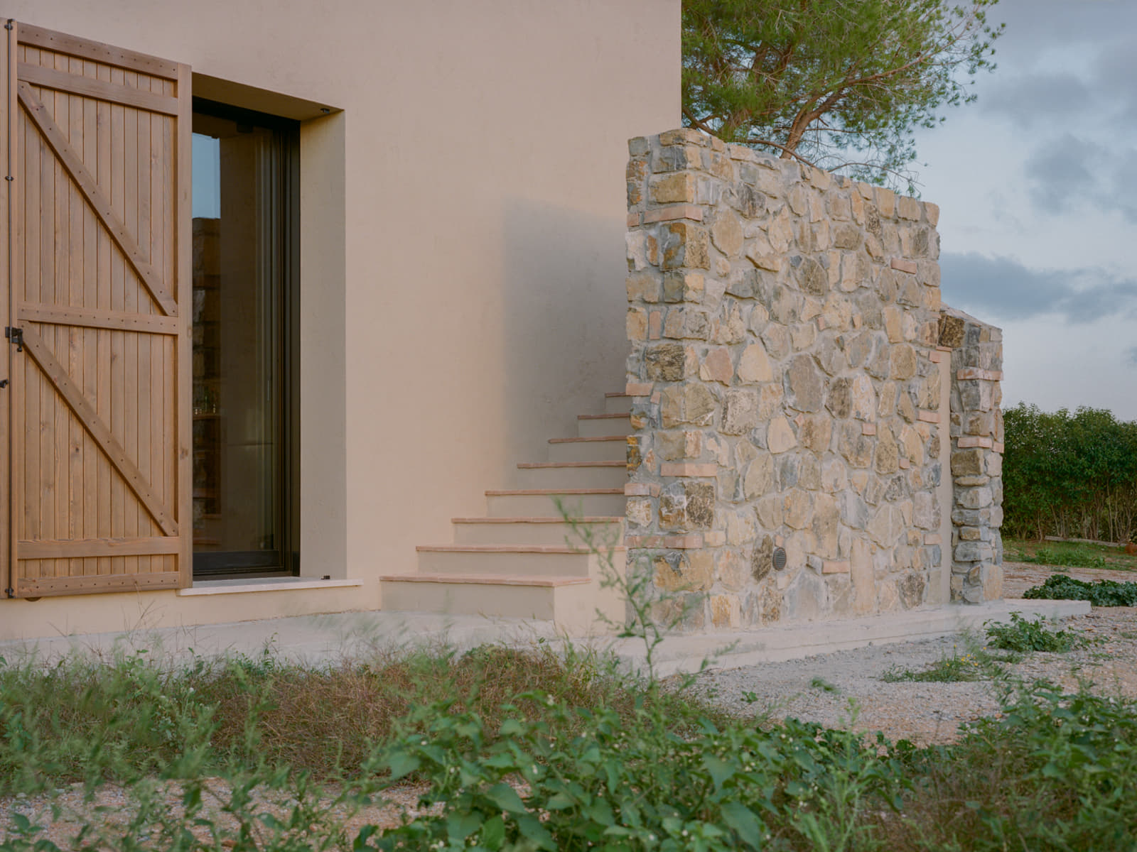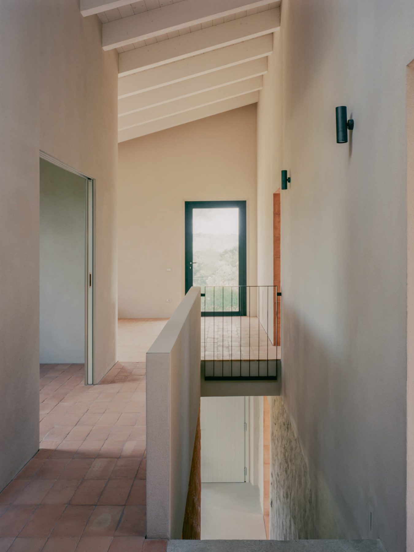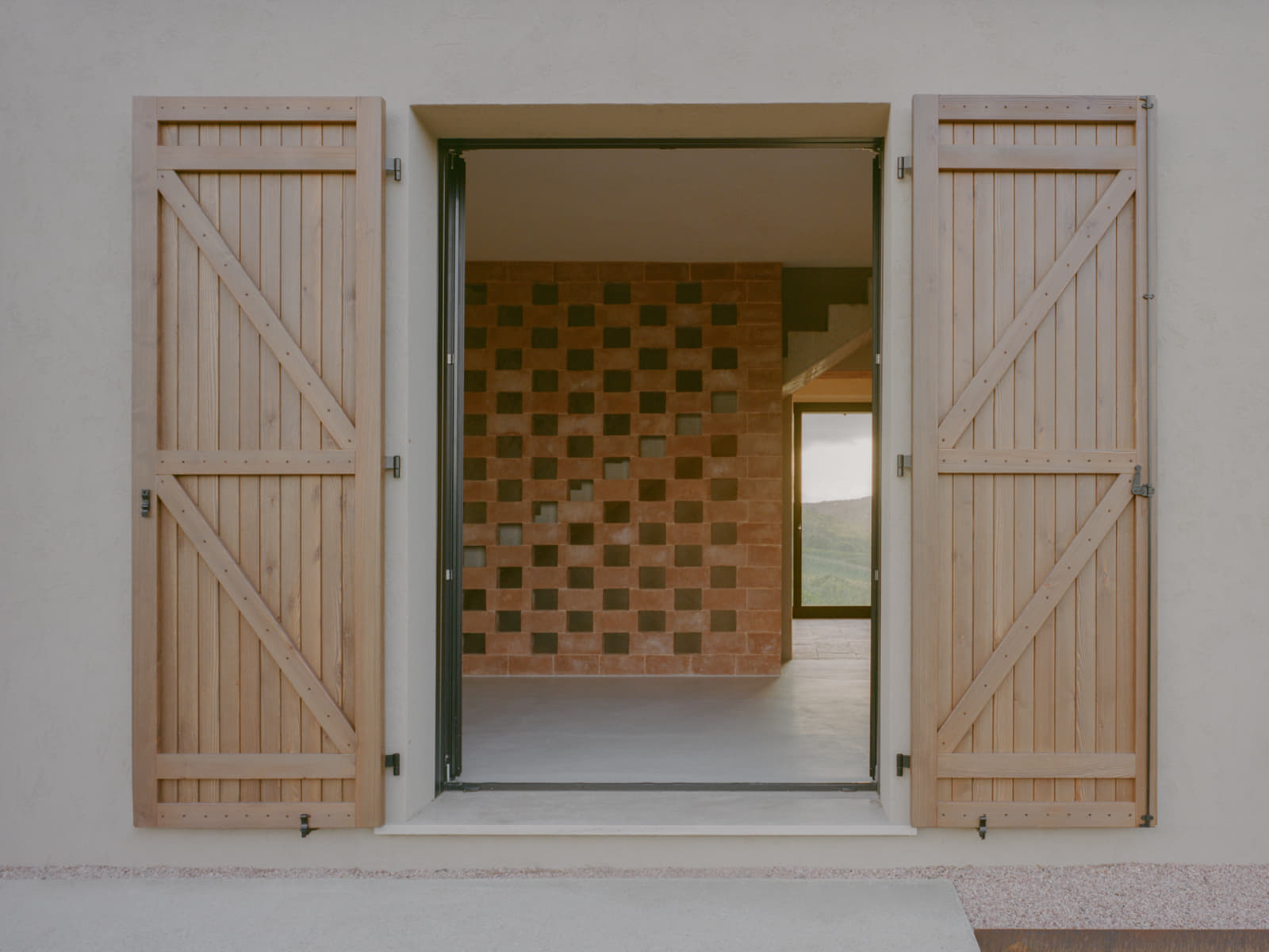The original small windows, designed with functionality in mind for agricultural work, were enlarged to create new views of the surrounding vineyards and to increase the amount of natural light in the interior.