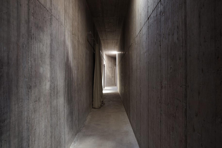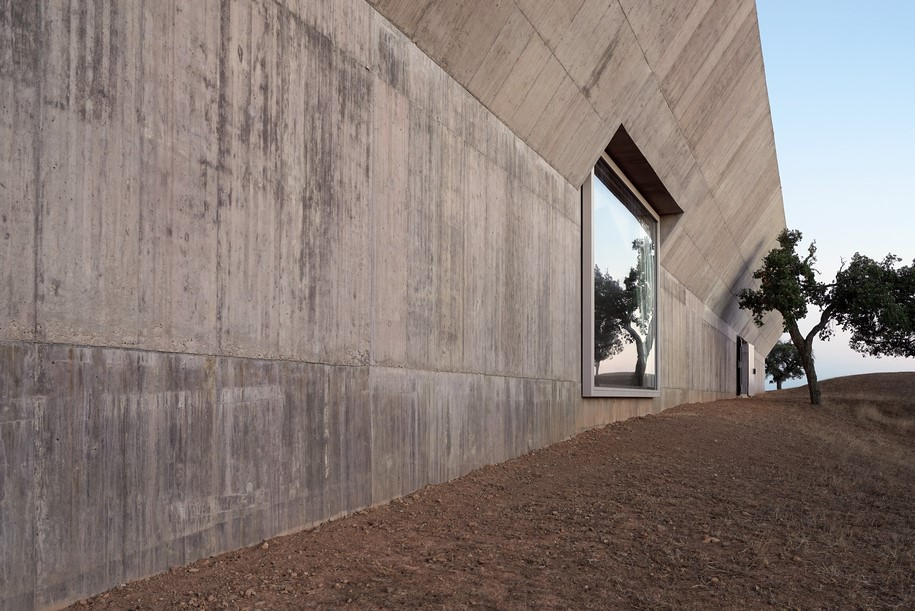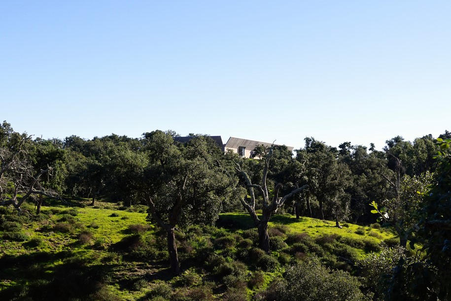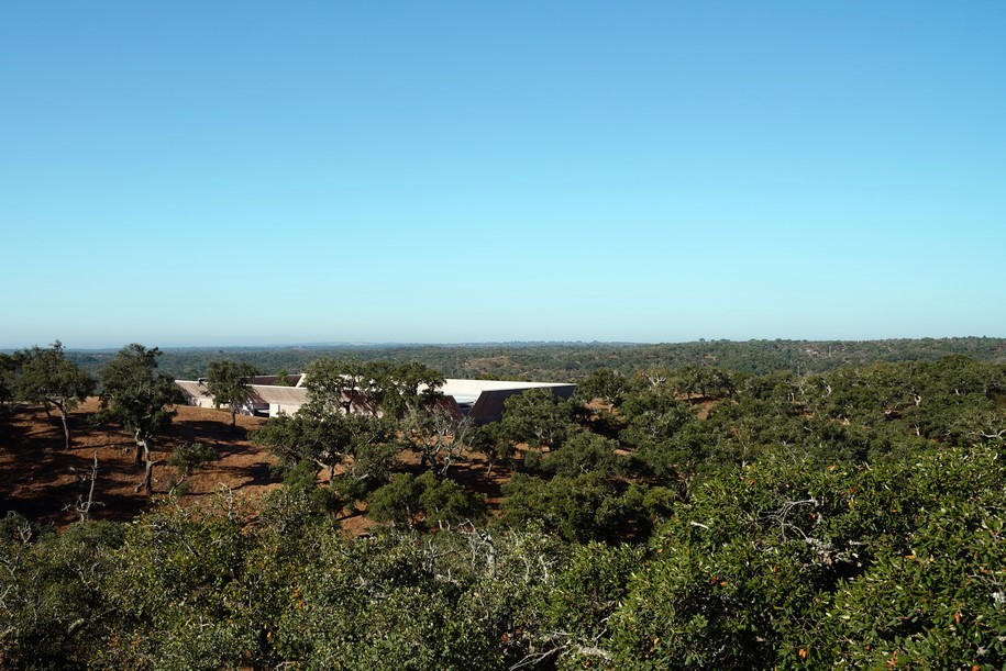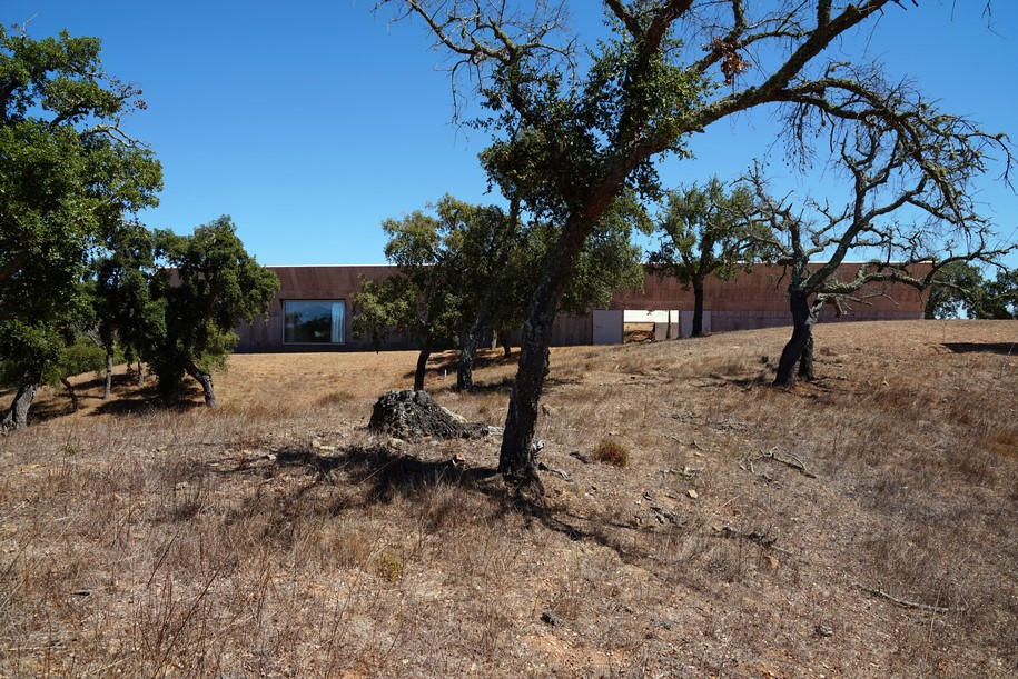This project designed by Valerio Olgiati is located in Alentejo about 10 km inland from the Atlantic Ocean. The area features a hilly, rural landscape and is covered with beautiful old cork oaks. The climate is mild and dry.