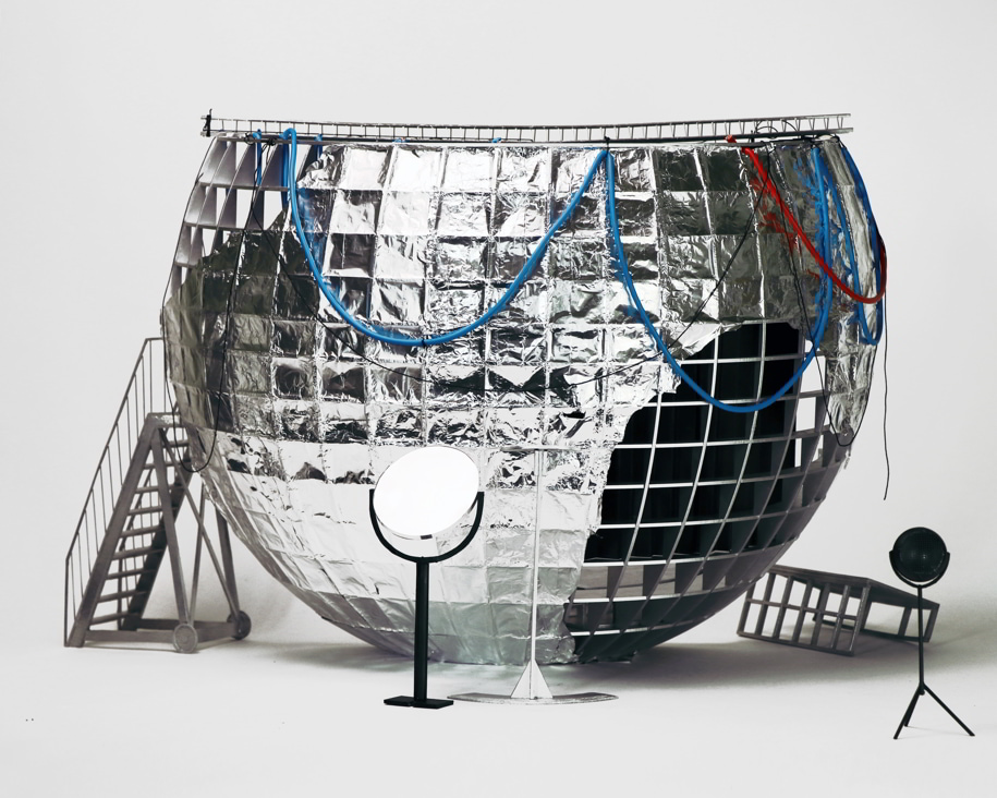 Its hemispherical shape elicits multiple images. It can be interpreted equally as a globe or as a mirror ball, a kitsch icon of an era when partying was still possible. This party aura suggests a new approach to today’s crises, one in which the emphasis is no longer on emergency, but on the possibility of alternative futures.