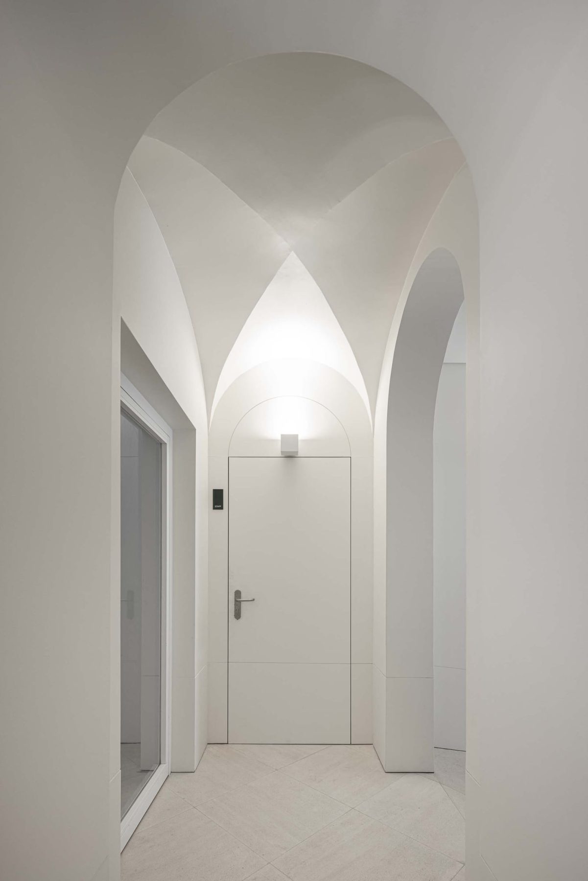 Vaulted ceilings punctuate each room, varying in scale and geometry depending on function, introducing a silent hierarchy that renders everyday domesticity into a spatially ceremonial register.