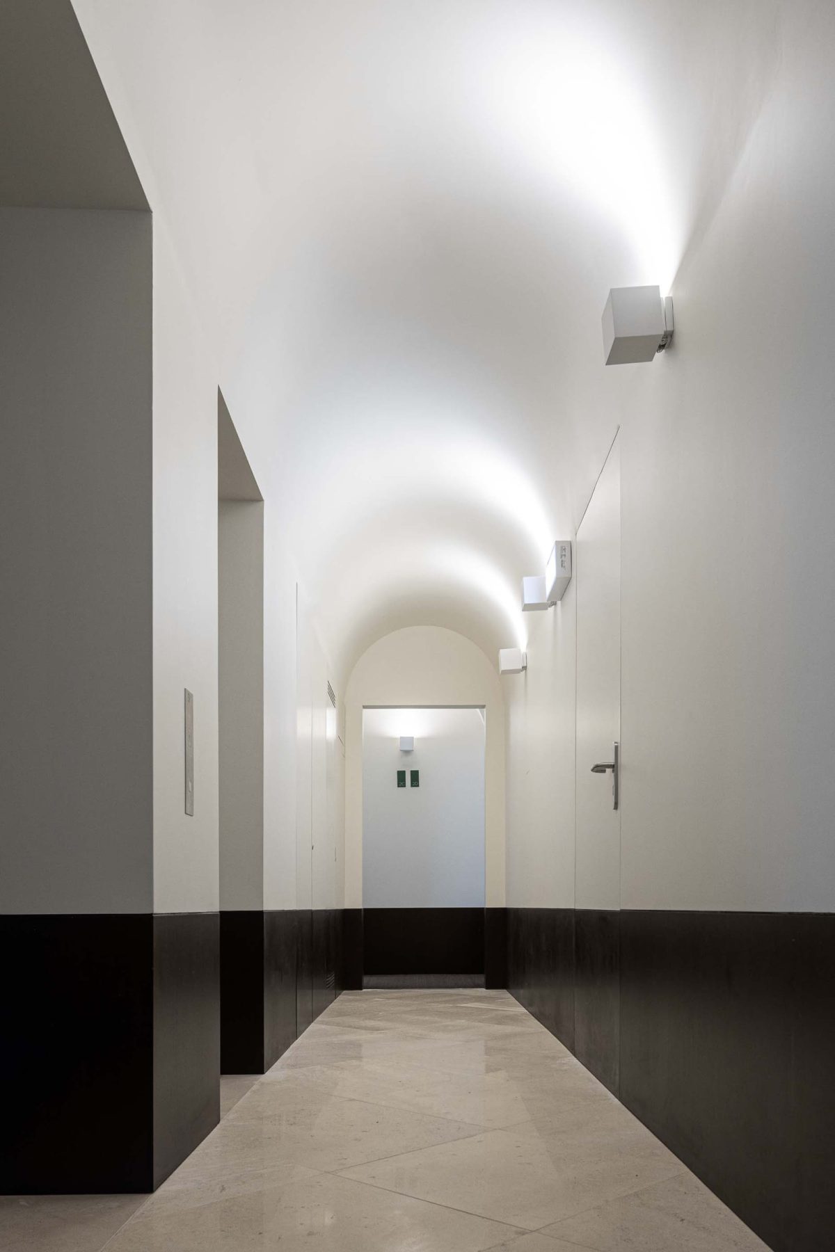 The former institutional structure has been reconfigured into 16 long-stay residential units, transforming civic rigidity into domestic spatiality through a position of critical reuse and architectural editing.