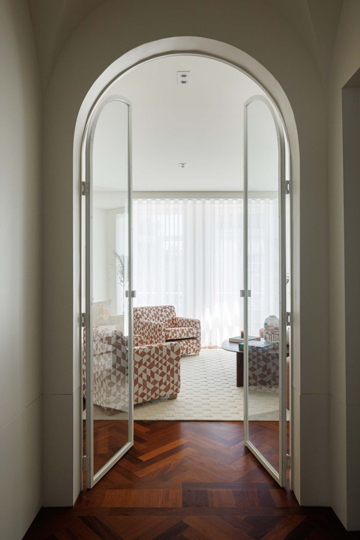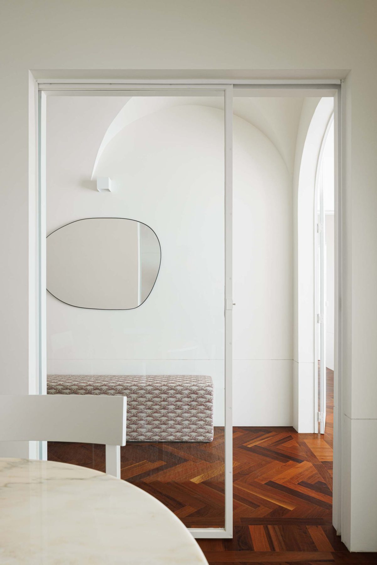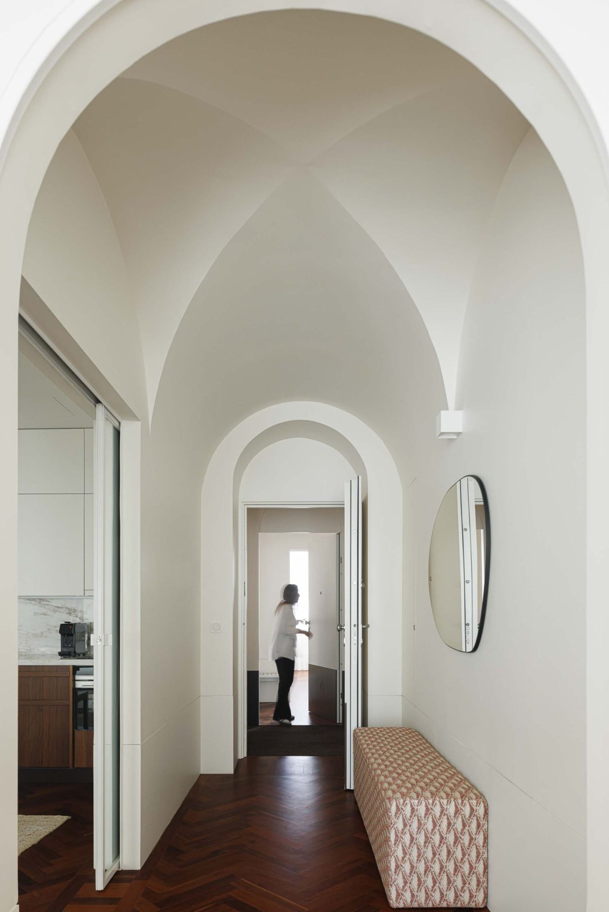 The internal layout draws inspiration from early 20th-century bourgeois homes, where rooms unfolded in sequence, without corridors.