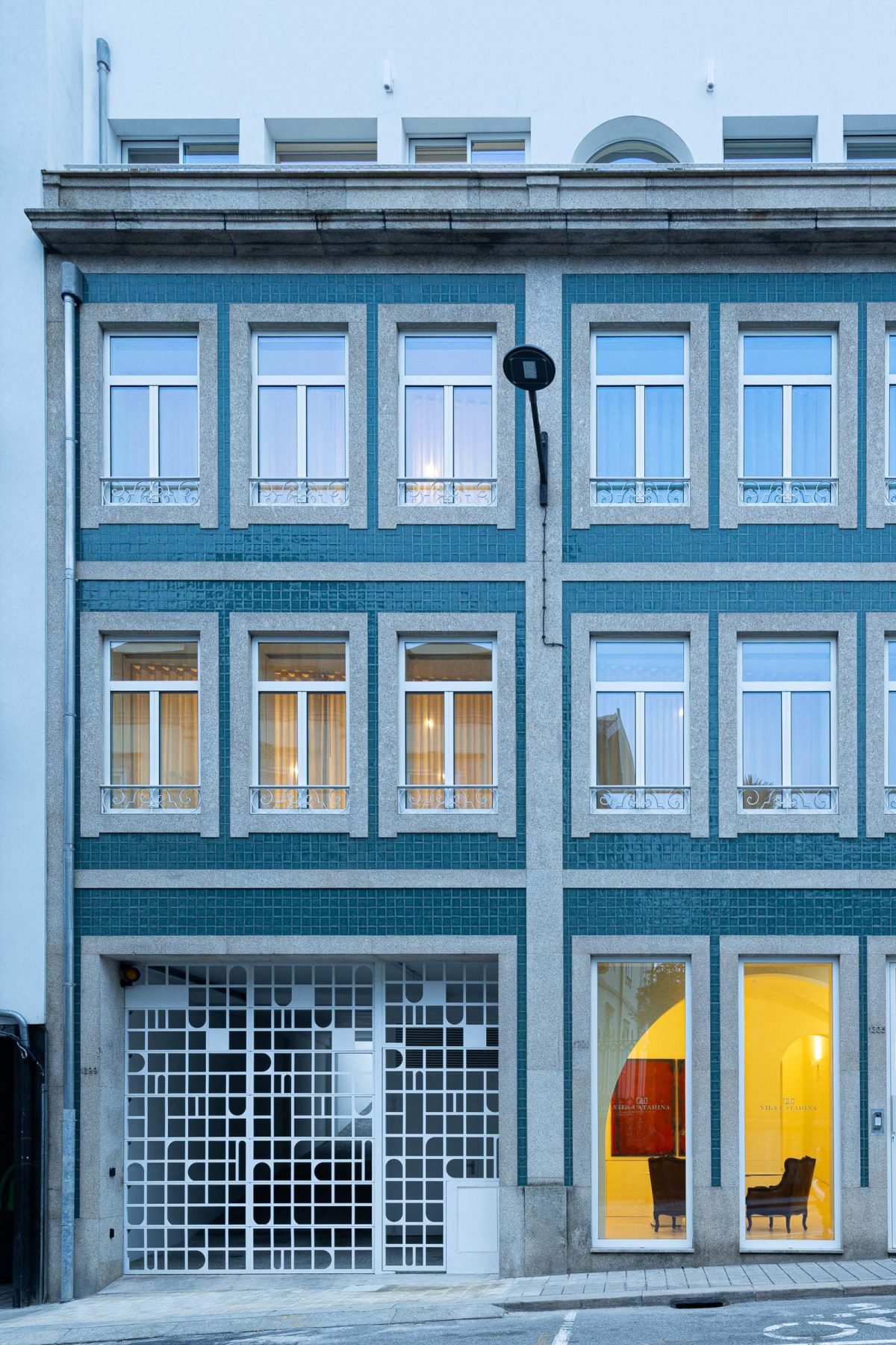 The main street-facing façade is restored with composure, respecting its original stonework and introducing new blue ceramic tiling as a subtle reference to its historical identity.