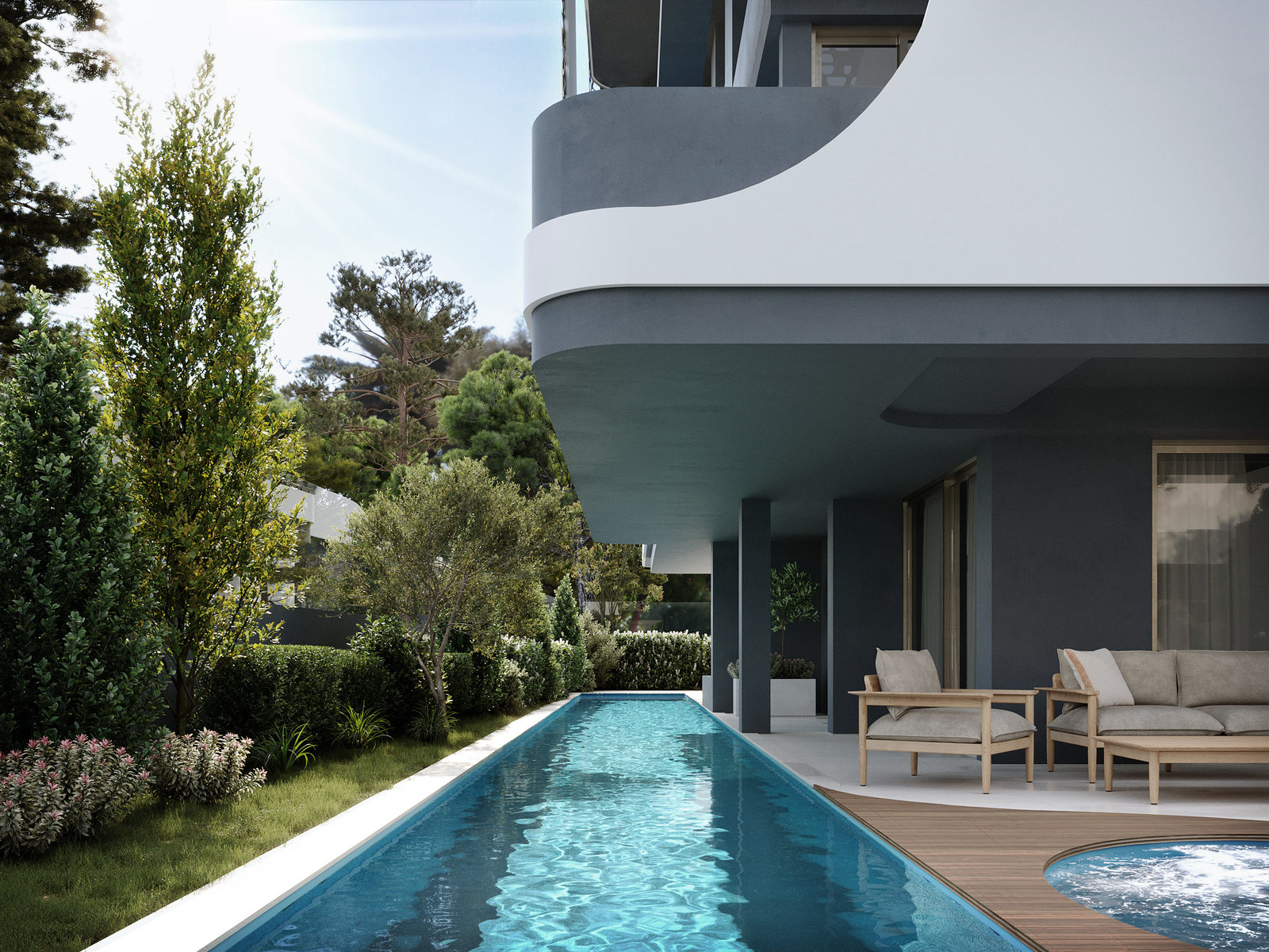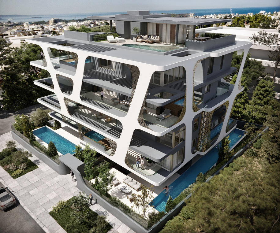 Οι ιδιαίτερα λειτουργικοί χώροι, τα μεγάλα μπαλκόνια, η ανεμπόδιστη θέα, οι ιδιωτικές πισίνες, η πράσινη στέγη, οι ευρύχωρες ιδιωτικές αυλές, η χρήση ανανεώσιμων και ανακυκλώσιμων υλικών, καθώς και η έμφαση στη μείωση της κατανάλωσης ενέργειας, μας εισάγουν σε μια νέα εποχή αστικών κτιρίων. Η σύνθετη κατασκευή του νέου αυτού δομικού πλαισίου βασίζεται στην υλοποίηση μίας εξειδικευμένης στατικής μελέτης χωρίς περιορισμούς στον αρχιτεκτονικό σχεδιασμό, η οποία κατέστησε δυνατά όλα τα παραπάνω.