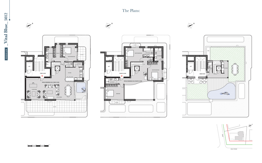 Τα ιδιαίτερα στοιχεία του νερού και του πρασίνου αναδεικνύουν τον σχεδιασμό του κτιρίου, ενώ οι ιδιωτικές πισίνες κάθε κατοικίας και το φυτεμένο δώμα, αποτελούν χαρακτηριστικά του Vital Blue που συντελούν καθοριστικά σε μια ολιστική εμπειρία διαβίωσης.