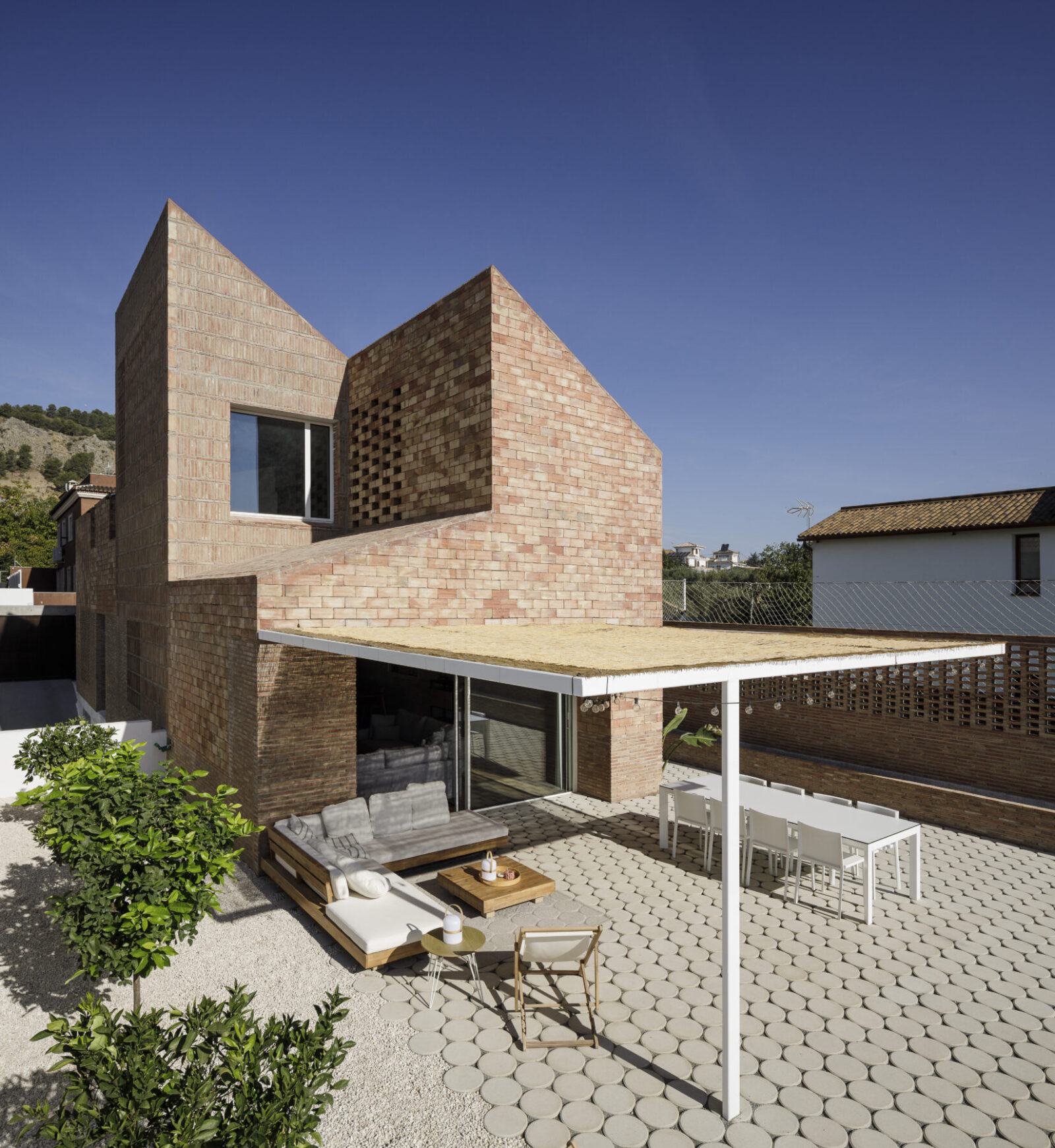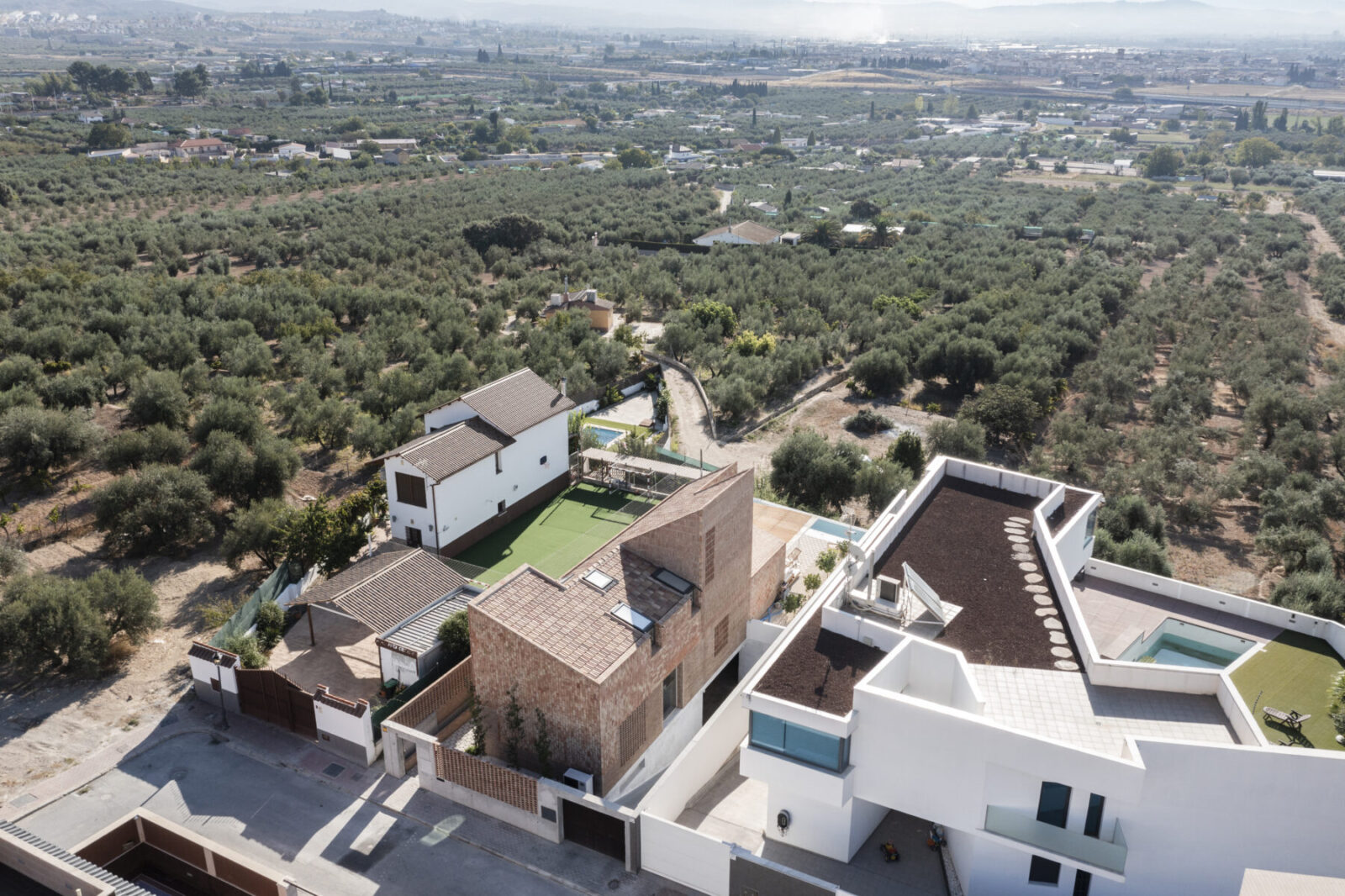Viva la Vega House’s, in Albolote, design was driven by the agricultural background of the clients, their childhood memories and their contemporary needs. SERRANO + BAQUERO office’s team, designed a simple plan and delivered a careful construction. The plan of the house was created by several sections exploring the relationship and the limits of the plot and the surroundings, the light and the views, while the volume and the aesthetic was inspired by the old local tobacco drying houses. Concrete and ceramic brick were used as the main materials.