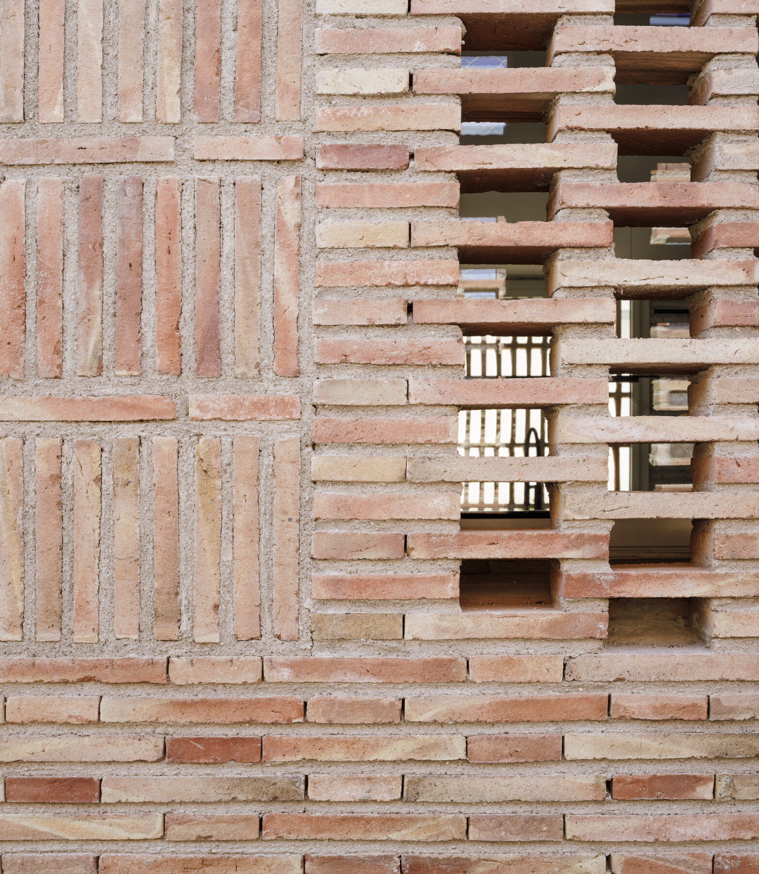 This situation allowed an interesting relationship and exchange between the two long facades, due to their proximity. We proposed a series of sections that responded to the different boundary conditions depending on their position. Thus, opaque walls of different heights appeared, covered with different slopes, skylights, brick lattices and windows depending on the opportunity for distant views, direct entry or filtered light, the presence of nearby buildings, the contact with the ditch or the orchard and the need for privacy.