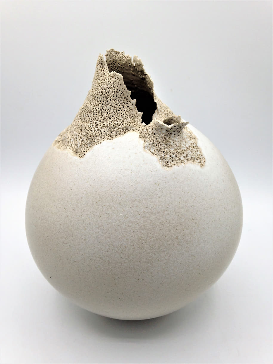 Όπως λέει «Δουλεύω με εναλλακτικές τεχνικές ψησίματος, το κλασικό «αμερικάνικο Raku» με γυαλώματα, την τεχνική “foil saggar” αποτυπώνοντας στον πηλό φύλλα και λουλούδια με καπνό και άλλες τεχνικές όπως το “horse hair Raku”. Μου αρέσει να πειραματίζομαι με τα απρόβλεπτα αποτελέσματα της φωτιάς και του καπνού, που είναι πάντα μια έκπληξη, ξέρεις περίπου τι θα συμβεί αλλά όχι ακριβώς – όπως άλλωστε συμβαίνει και στη ζωή. Επίσης φτιάχνω γλυπτά και άλλα χρηστικά αντικείμενα. Ζώντας σε αυτό το όμορφο νησί η έμπνευση είναι μεγάλη!»