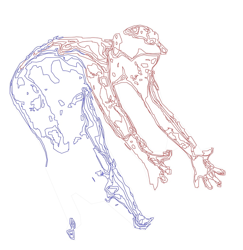 Οι φωτογραφίες αυτές, αφού ψηφιοποιήθηκαν, αναλύθηκαν σε γραμμές-διανύσματα τα οποία επανασχεδιάστηκαν, μεταβλήθηκαν και οριστικοποιήθηκαν μέσω του αρχιτεκτονικού λογισμικού autocad. Από αυτό το πρόγραμμα προέκυψαν τα γραμμικά σχέδια τα οποία παρουσιάζονται εδώ. Πρόκειται για μία μέθοδο cad (computer-aided design) με το συγκεκριμένο λογισμικό που δεν γνωρίζουμε να έχει χρησιμοποιηθεί από άλλους εικαστικούς καλλιτέχνες.