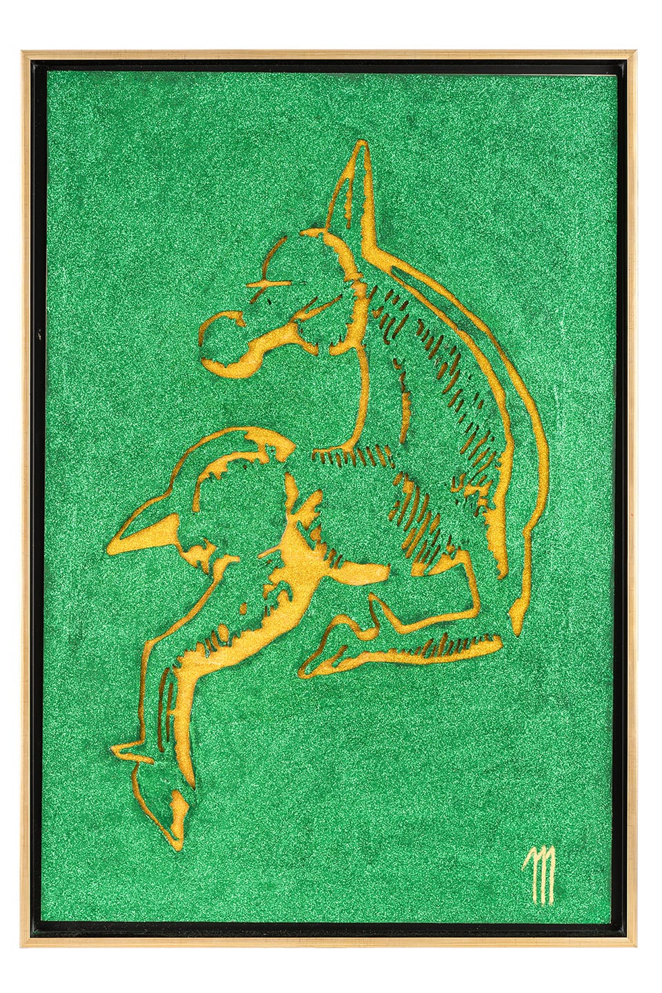 Η υλικότητα των έργων — από τον καμβά μέχρι το χαραγμένο μαύρο plexiglass με φύλλα χρυσού — εντείνει τη δραματουργία του φωτός και της σκιάς, φέρνοντας στο προσκήνιο τη σωματικότητα της τέχνης ως εμπειρία και πράξη.