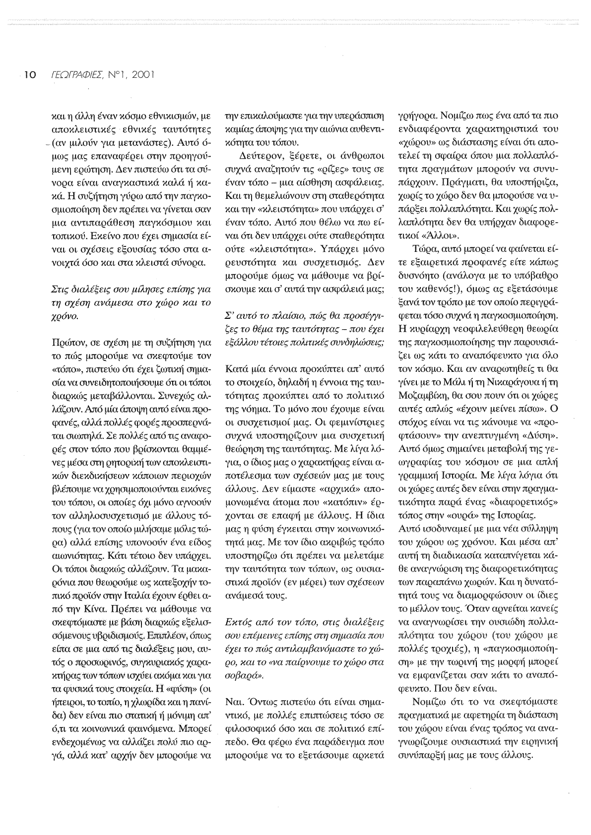 «Ο Κολωνός αποτελεί (παραφράζοντας τον Ι. Καλβίνο) τη “γειτονιά που υπονοείται” στις μετέπειτα αναζητήσεις μου, αλλά και ένα πεδίο σημαντικής κοινωνικής εμπειρίας, πτυχές της οποίας συνεχίζω να ανακαλύπτω μελετώντας την πόλη.»