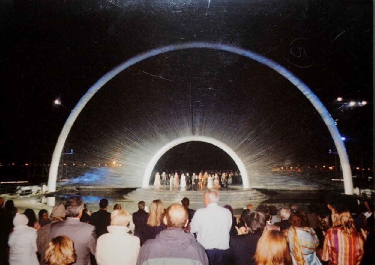 «Ο θεατής μπαίνει από την πίσω πλευρά της σκηνής, περνά το φουαγέ, συναντά το σκηνικό, που είναι από χαρτόνια και λινάτσες, απλά υλικά· το απομυθοποιεί σχεδόν, έρχεται σε επαφή με την κουζίνα του θεάτρου πρώτα και έπειτα φτάνει στη θέση του. Όταν σβήνουν τα φώτα και αρχίζει η παράσταση, συντελείται το θαύμα. Η λινάτσα γίνεται μετάξι και αρχίζει το παραμύθι αυτού του μαγικού κόσμου των μεταμορφώσεων.»