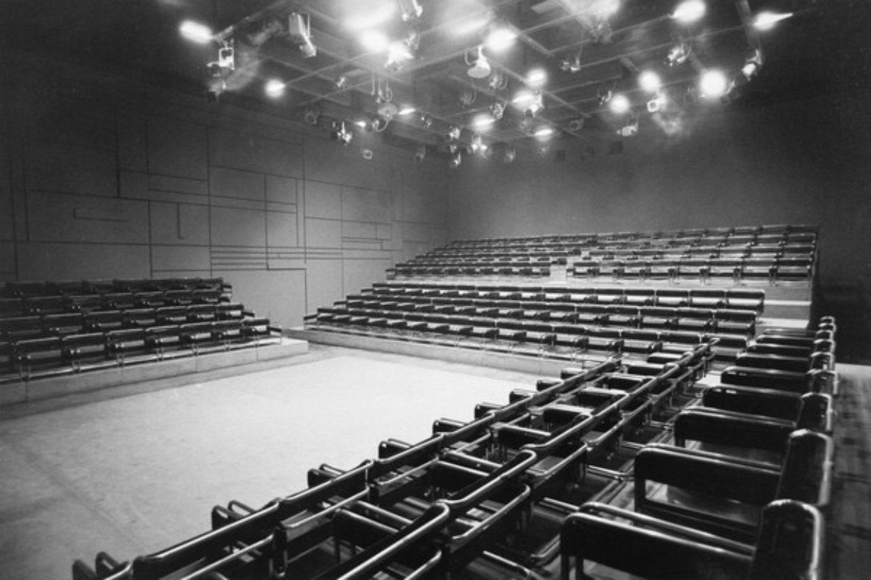 Ασπρόμαυρες φωτογραφίες του Μάνου Περράκη, δίπλα στη Μελίνα Μερκούρη και στον Κάρολο Κουν, για τον οποίο ο αρχιτέκτονας σχεδίασε το Θέατρο Τέχνης της οδού Φρυνίχου στην Πλάκα, τοποθετούνται δίπλα από την απολύτως πρωτοποριακή, για την εποχή της, Νέα Σκηνή του Εθνικού Θεάτρου όπου εισήγαγε, για πρώτη φορά, στην Ελλάδα ένα μοντέλο διαφορετικό από την ιταλική σκηνή που, δυστυχώς, δεν σώζεται μέχρι σήμερα.