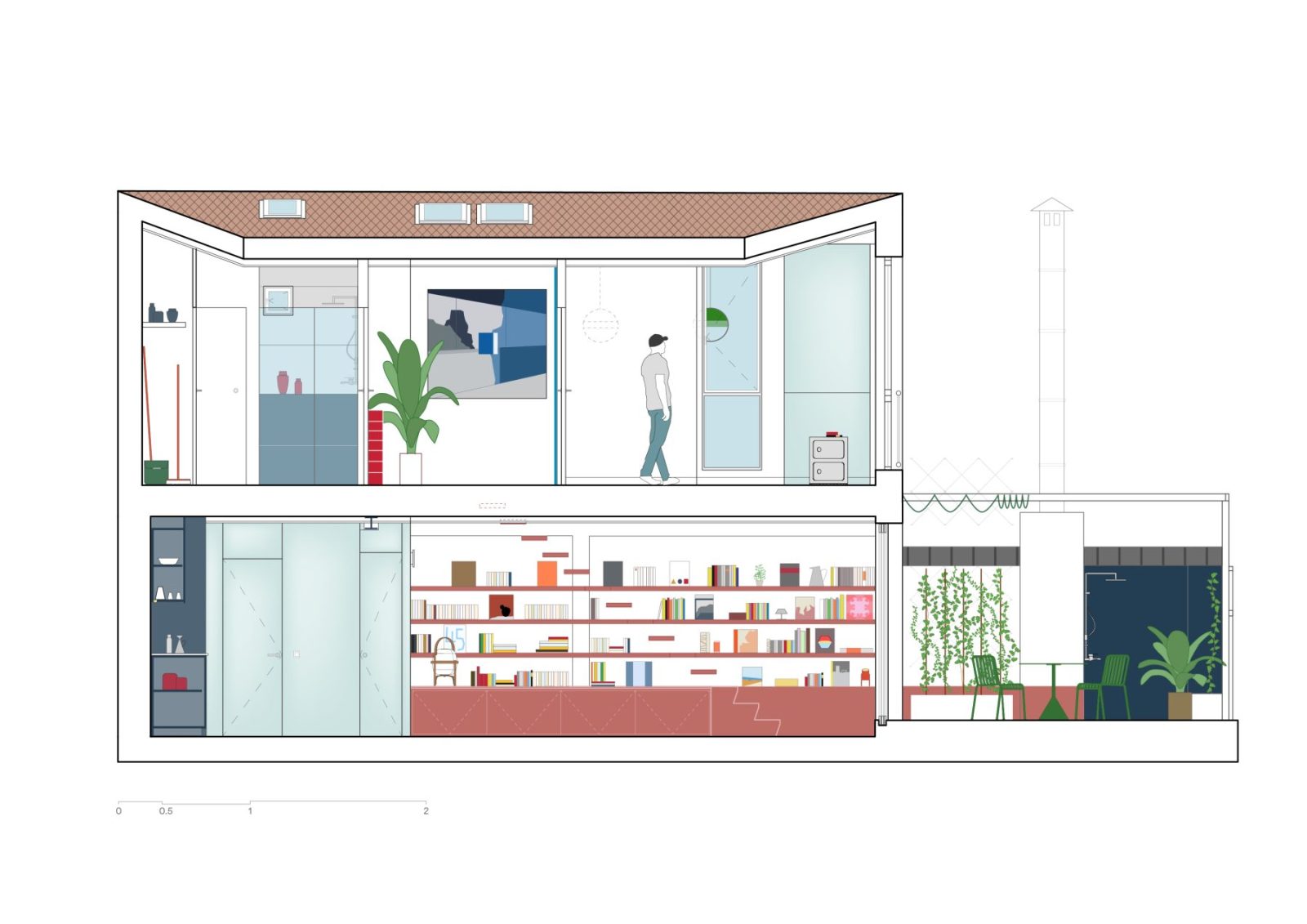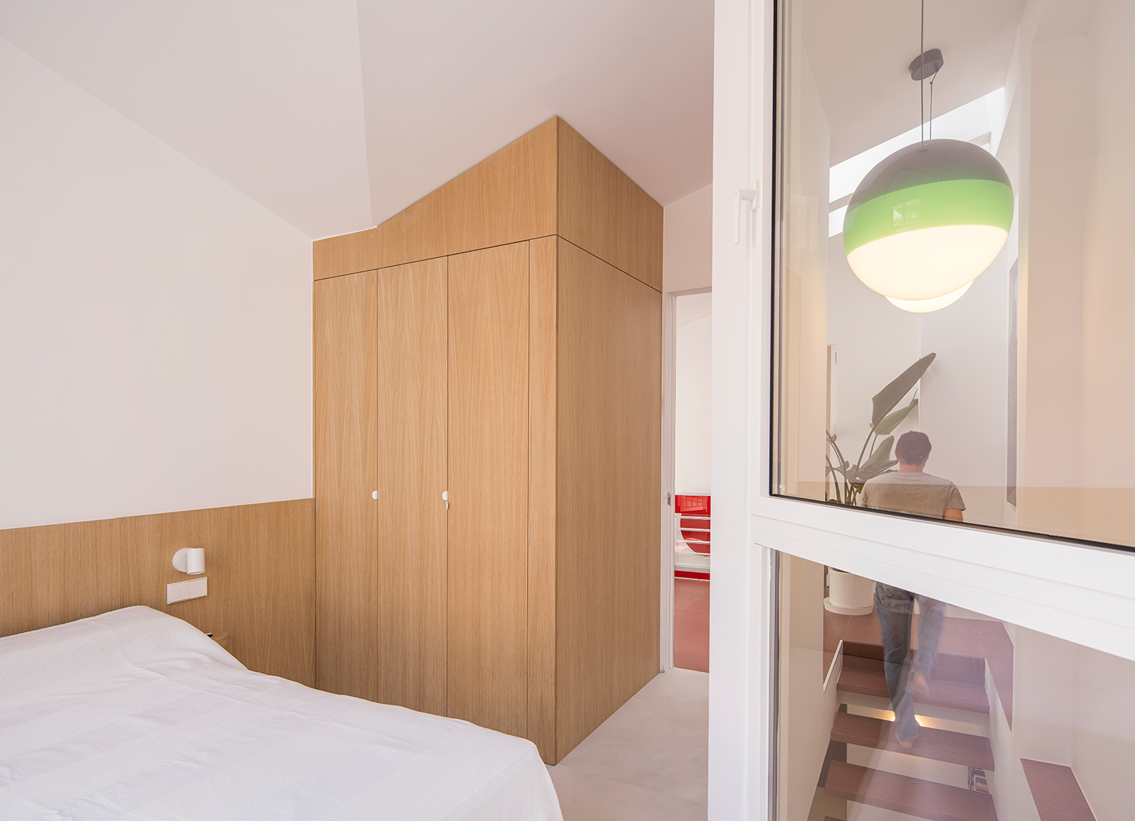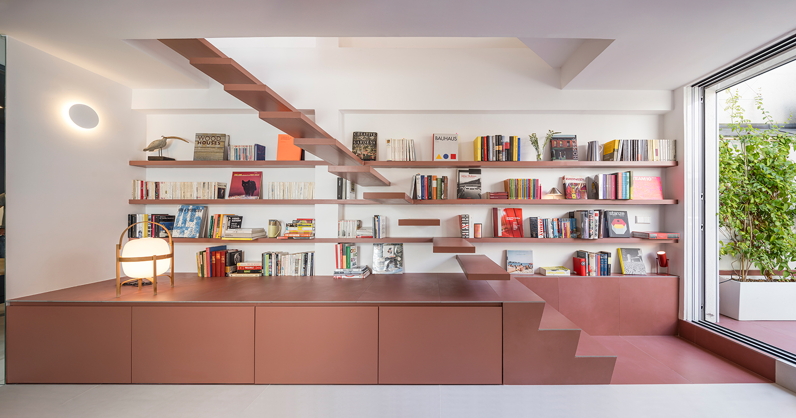Light penetrates deeper into the duplex, circulation becomes intuitive, and the stair itself evolves into a hybrid object—simultaneously staircase, shelving system, and inhabitable furniture. It is no longer merely crossed; it is lived alongside.
