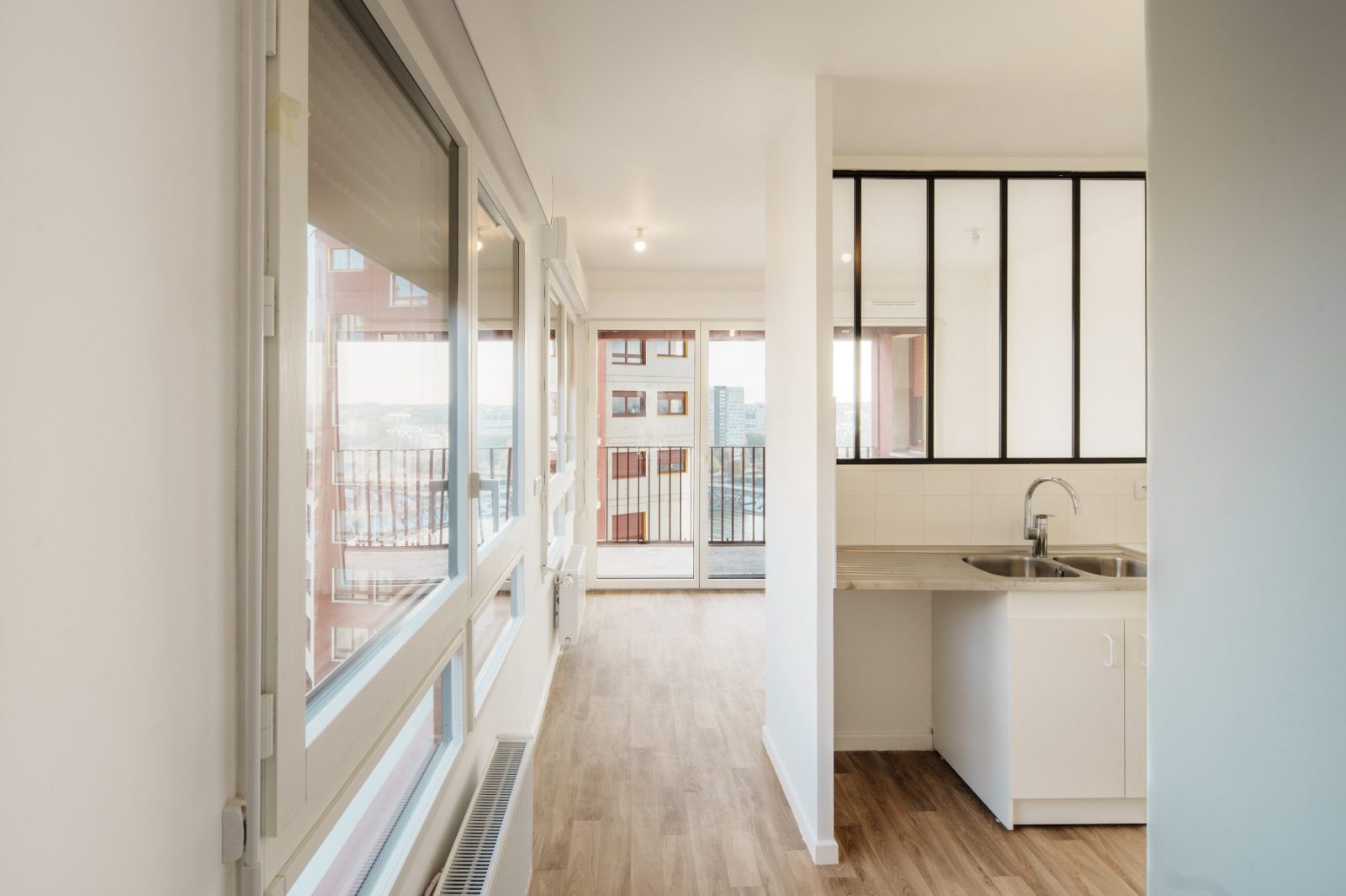 Spanning 22,863 m², including 19,700 m² of housing, START-Ivry comprises five towers of 13 to 19 storeys anchored by a commercial plinth with 14 adaptable retail units, creating a vibrant hub within the urban redevelopment zone. The project delivers 288 dwellings—potentially 350 with future subdivisions— of which half are for homeownership, 34% are social housing, and the remainder are intermediate housing. Two of the five towers are mixed combining different housing regimes even on the same corridor – a rarity in France.