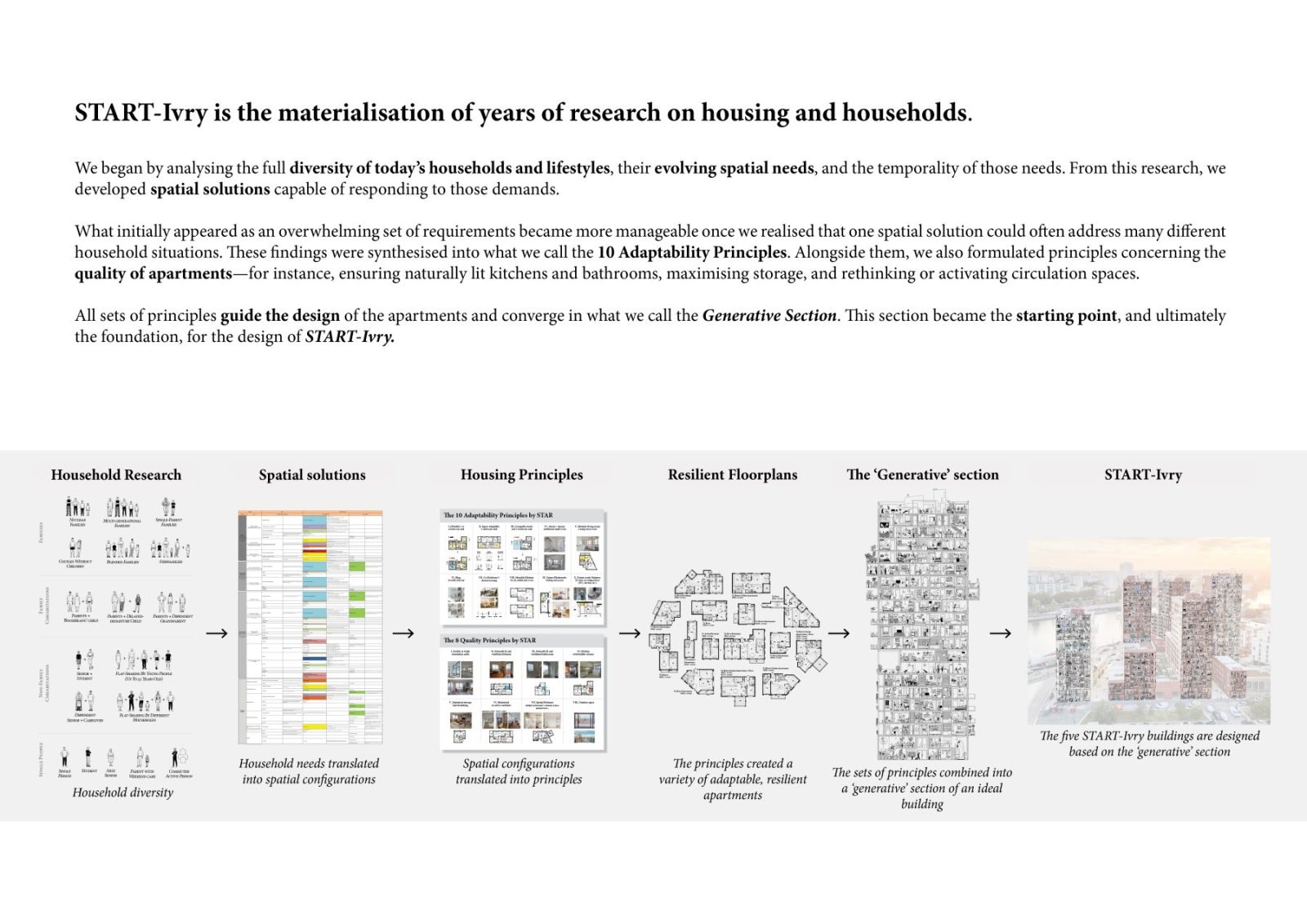 START-Ivry challenges outdated dogmas, resists the dominant trend towards standardisation, and offers concrete responses for creating resilient social structures. As an extension of this work, STAR is currently preparing a book on its housing research and theories, in which START-Ivry is presented as a case study of a new way to conceive and produce housing.
