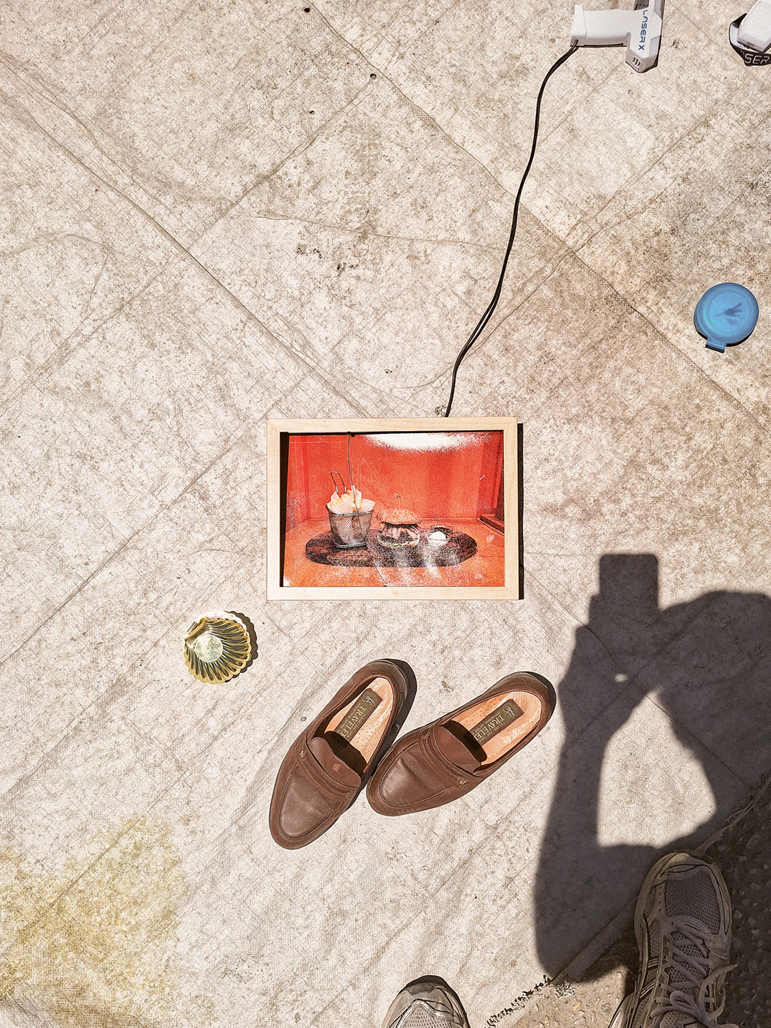 Ο λόγος που βρίσκομαι εδώ είναι για να παρατηρήσω. Τα χρώματα, οι λέξεις και τα σχήματα διαρκώς τραβούν την προσοχή μου, μαζί με το ζεστό φως του ήλιου που ρίχνει σκιές σε κάθε επιφάνεια.