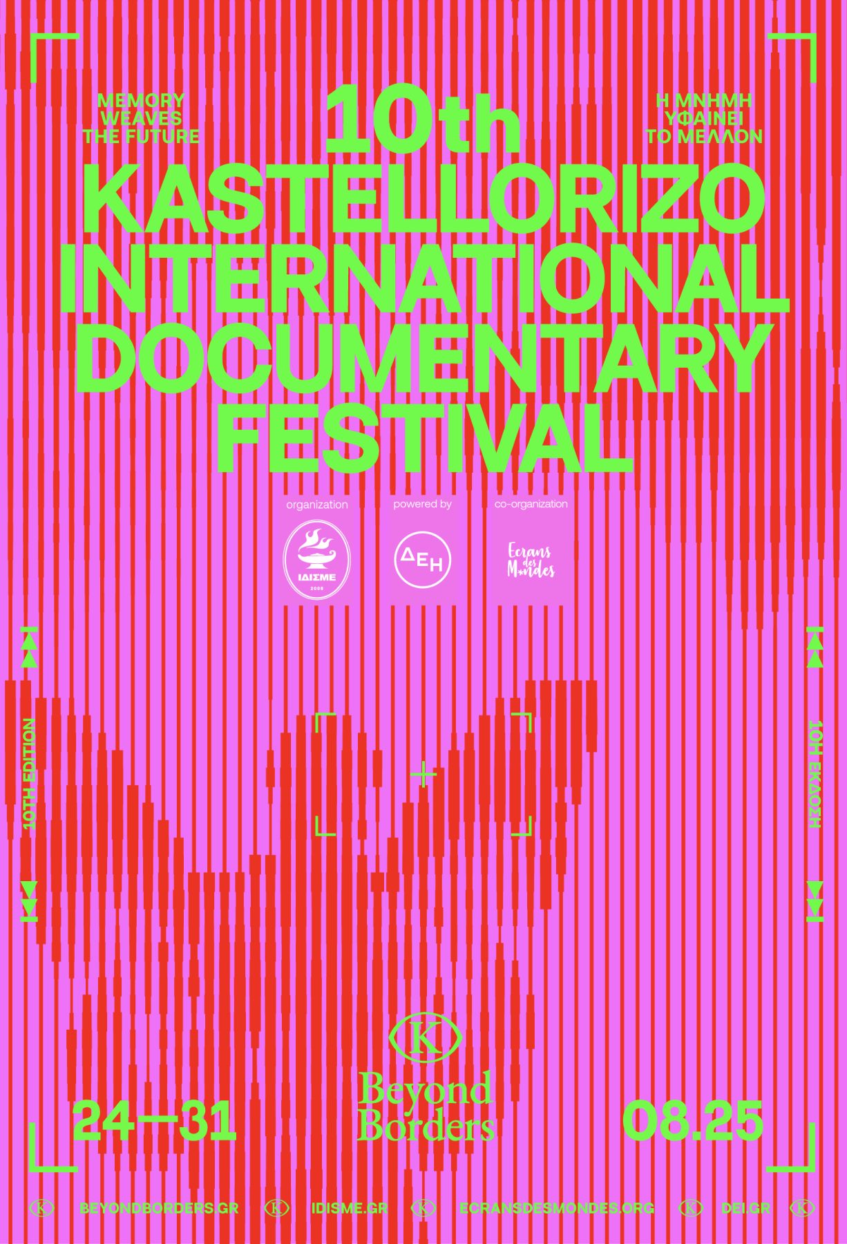 Το Beyond Borders Διεθνές Φεστιβάλ Ντοκιμαντέρ Καστελλορίζου (24-31 Αυγούστου 2025) αφιερώνει την 10η επετειακή του έκδοση στο ελληνικό ντοκιμαντέρ με έμφαση στη σύγχρονη δημιουργία και παραγωγή. Το φεστιβάλ εστιάζει στην πορεία του ελληνικού ντοκιμαντέρ, ενός κινηματογραφικού είδους που αναμετράται με την πραγματικότητα, την καταγράφει, τη σχολιάζει και την αναδιαμορφώνει, αποτελώντας έτσι ένα είδος κινηματογραφικού αργαλειού, όπου το παρελθόν και το παρόν δένουν και δημιουργούν έναν αφηγηματικό καμβά που εκτείνεται στο μέλλον.