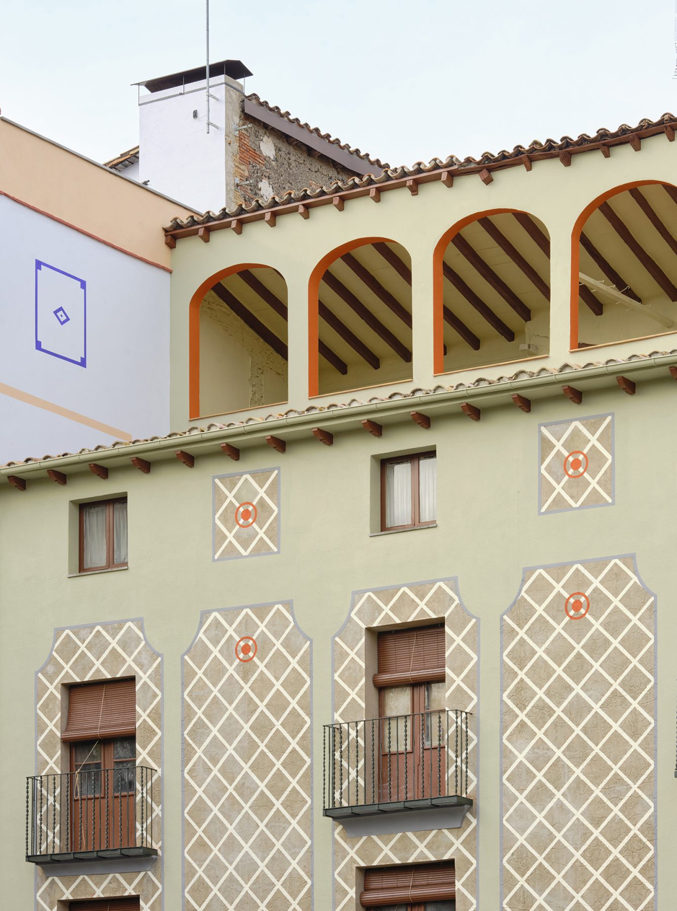 Central to the intervention is a chromatic strategy rooted in local tradition, drawing from the historic practice of painted façades and the decorative legacy of the Olot School of Art since the late 18th century.