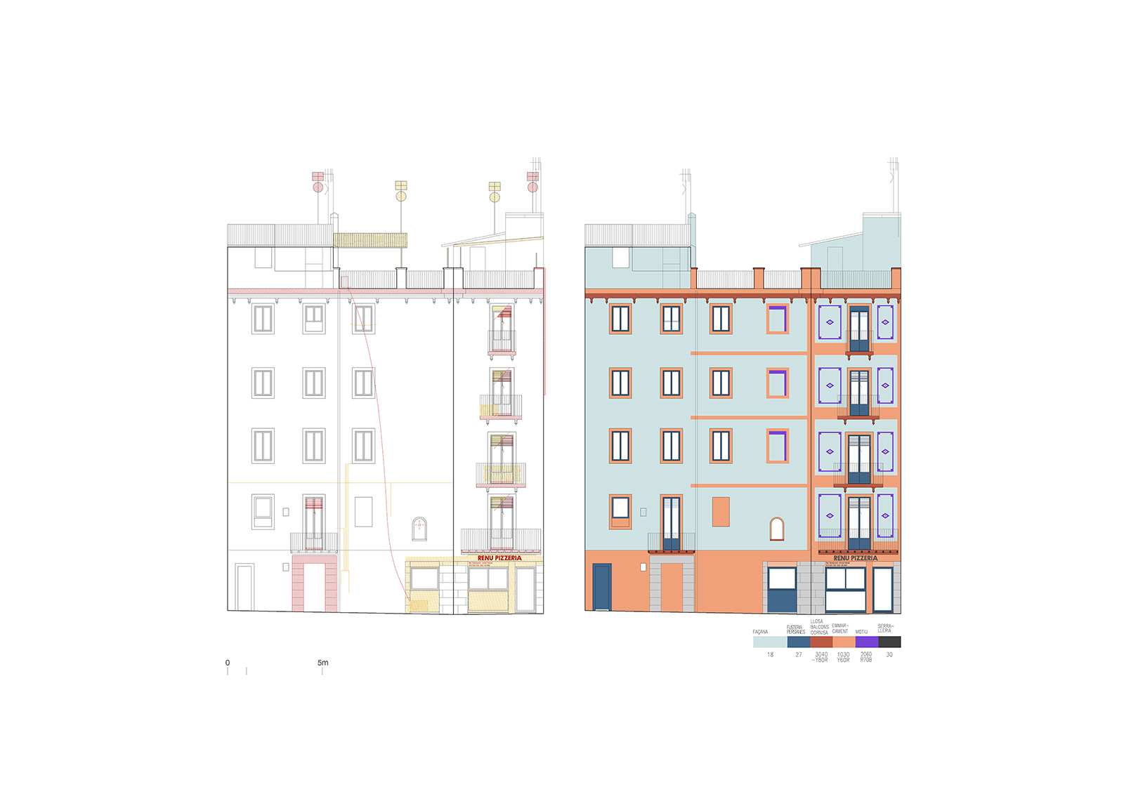 The Plaça Major of Olot, the geographical and symbolic heart of the city, is defined by a continuous ensemble of modest buildings unified through the repetition of compositional, constructive, and decorative patterns. Prior to the intervention, the square embodied the challenges facing the historic urban fabric, marked by widespread structural deterioration and constructive pathologies. At the same time, a significant proportion of residences remained vacant, leaving nearly one-third of the housing stock unoccupied.
