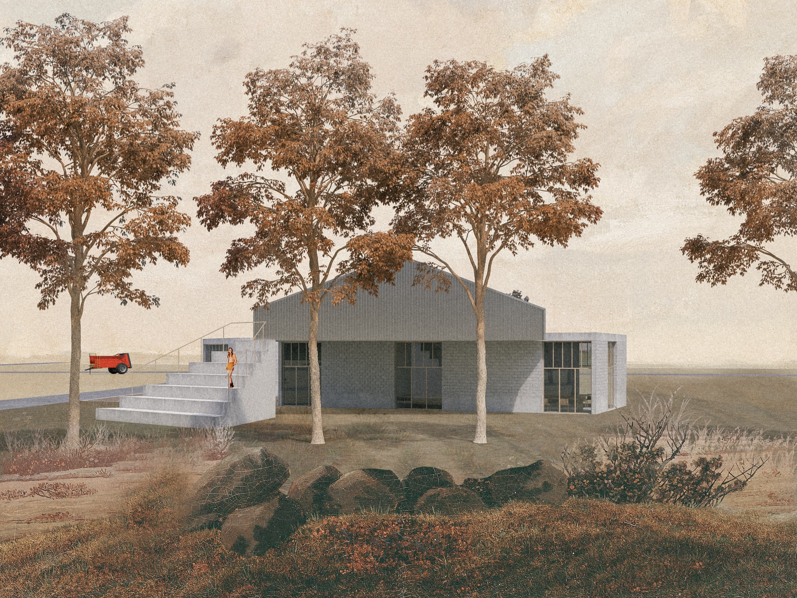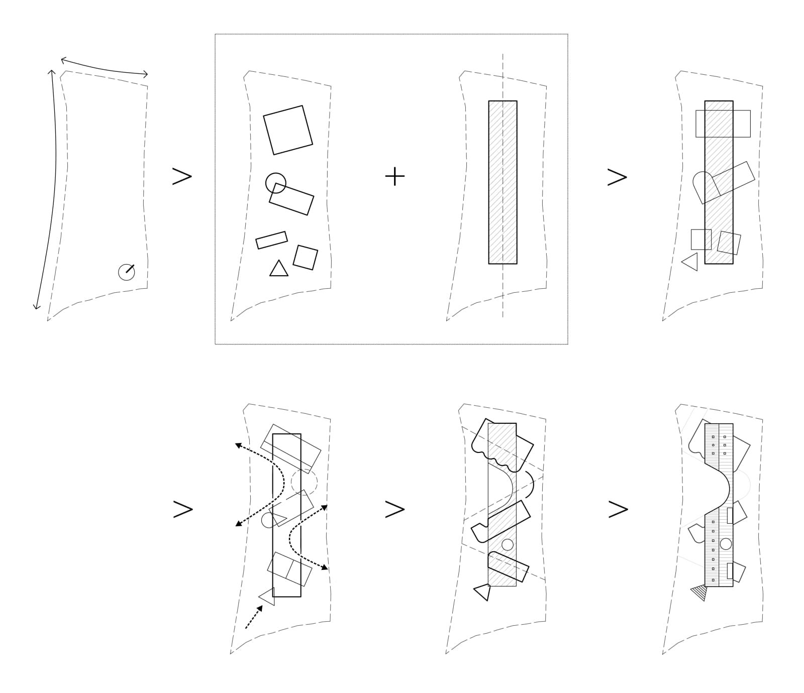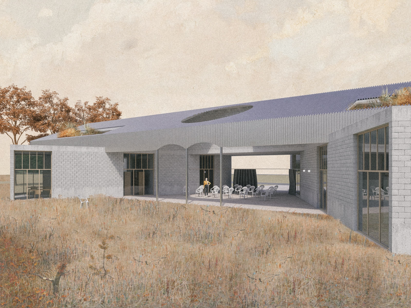 Το μακρόστενο σχήμα του οικοπέδου τέλος είναι ένας ακόμα λόγος που η παραπομπή στη μακρόστενη τυπολογία της αγροτικής αποθήκης βοηθάει στην προσαρμογή στην περιοχή επέμβασης.