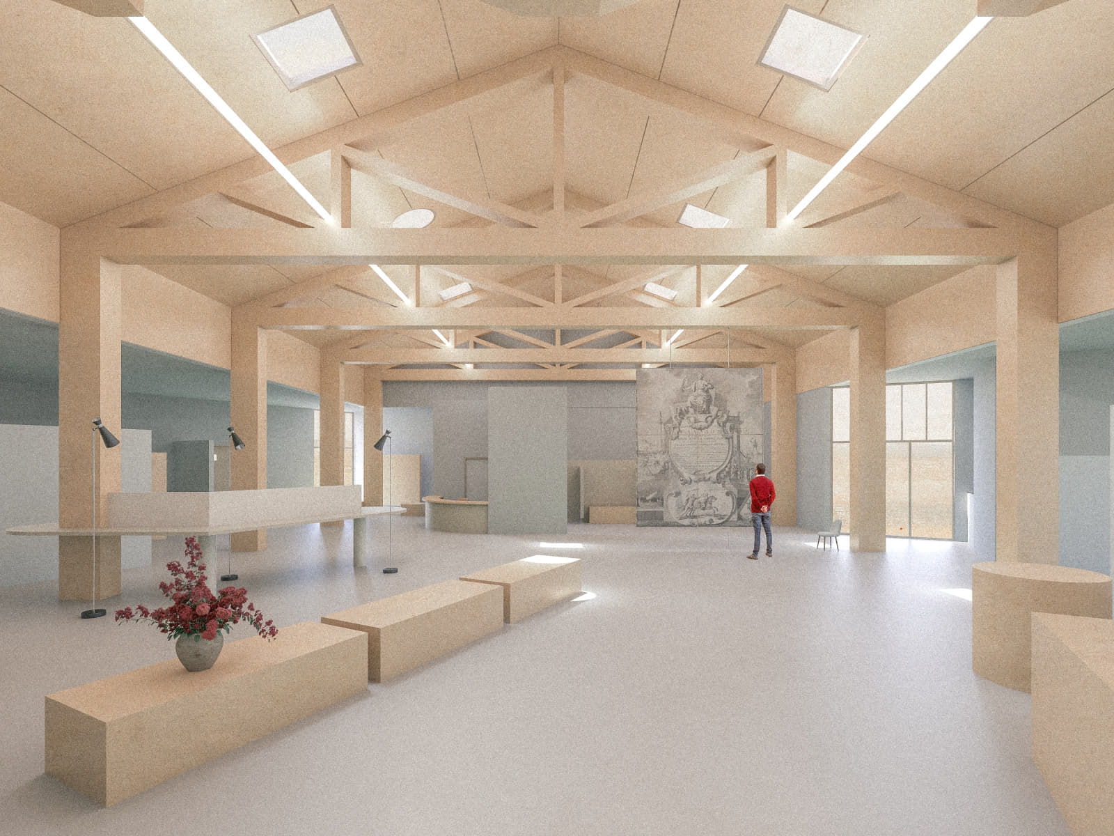 The universal and inclusive vision of Rigas Feraios for the Balkans, as well as the character of the region, will serve as the two starting points for the development of object-e’s proposal for the new museum building in Velestino. The space is shaped as a composition of distinct, fragmented volumes that support an overlying and unified one, whose form and materiality reference the typology of the region’s agricultural warehouses.