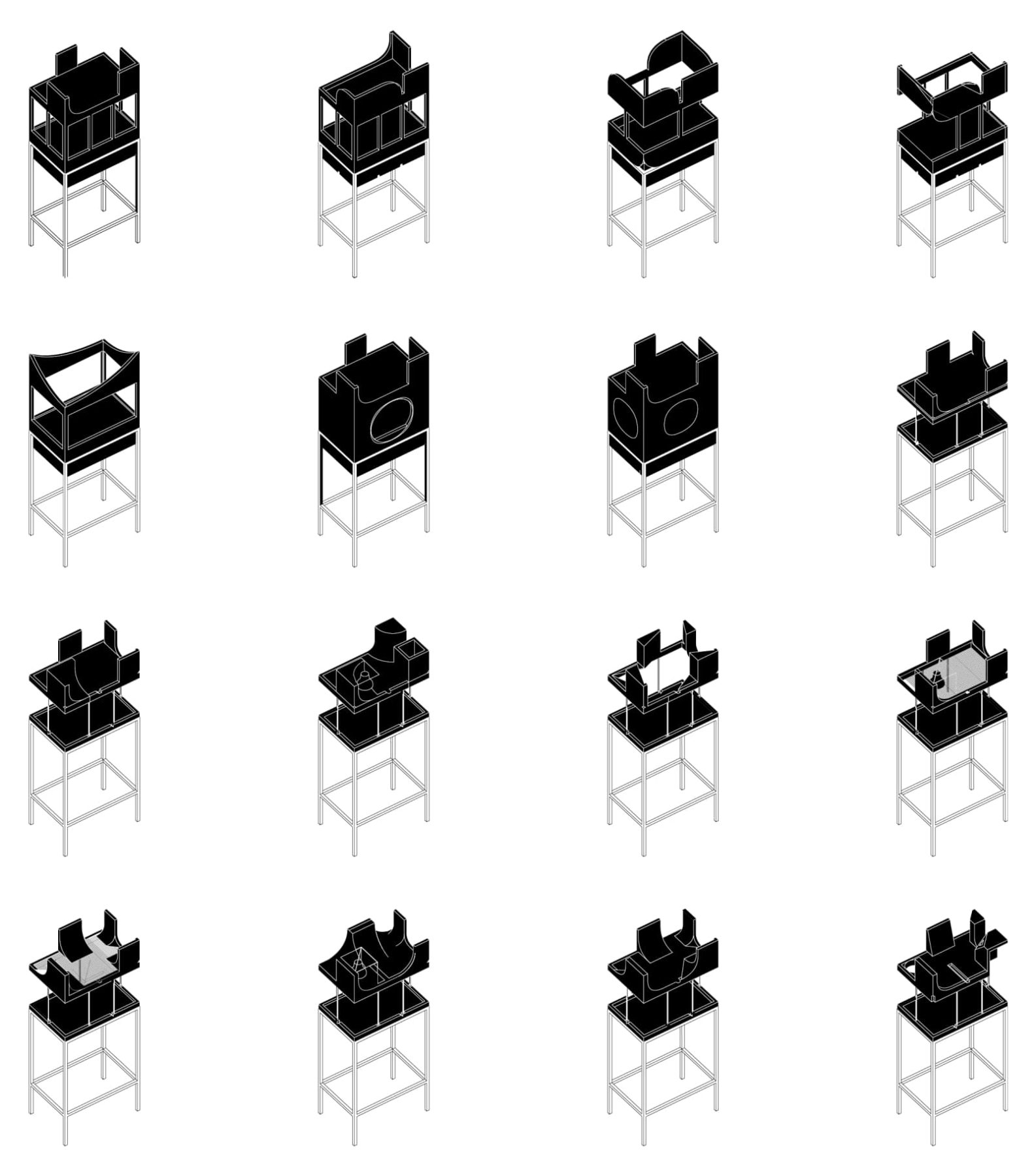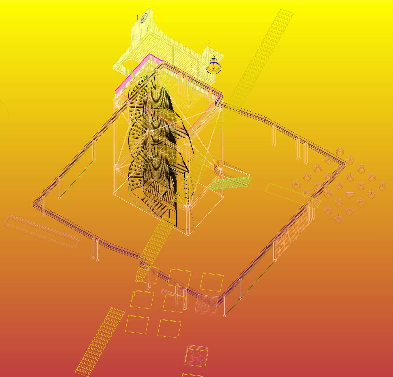 Object-e’s participation in the architectural competition for the design of a public clock in the city of Larissa centers on the spatial and conceptual composition of the tower and the garden. In response to the brief for an urban clock, the architectural team identifies the form of the tower, placing beside it its archetypical opposite: the garden. The tower emerges from within the garden, while climbing plants appear to create a link between the two elements.