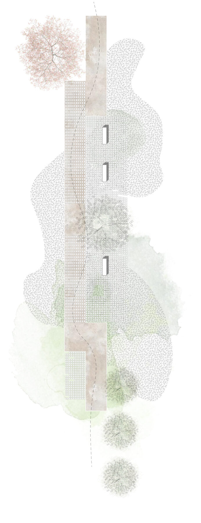 Έπειτα από μία σπουδή σε μοτίβα και χαράξεις οδηγούμαστε σε ένα νέο συντακτικό υλικότητας και μορφολογικών επιλύσεων που επιτυγχάνει μία πολυπλοκότητα σε μικροκλίμακα, με εναλλαγή υφών και υλικών, προκαλώντας τις αισθήσεις και κινητοποιώντας τον επισκέπτη να αλληλεπιδράσει με το στοιχείο του αστικού πρασίνου.