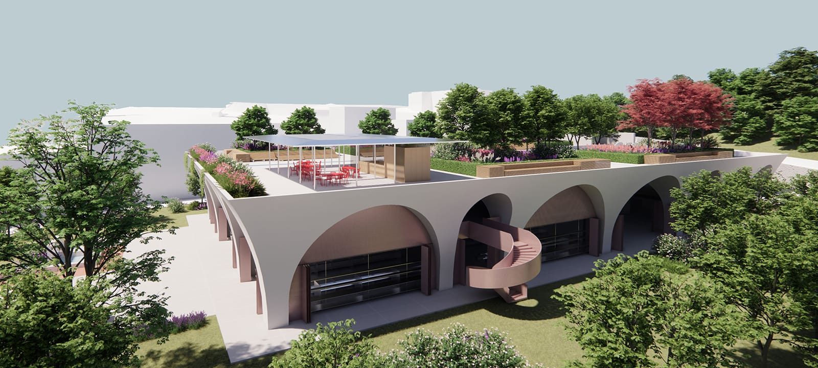 Το θολωτό κέλυφος της Αγοράς, ο υπερυψωμένος κήπος και η νέα πλατεία συγκροτούν ένα ενιαίο αρχιτεκτονικό και αστικό σύνολο.