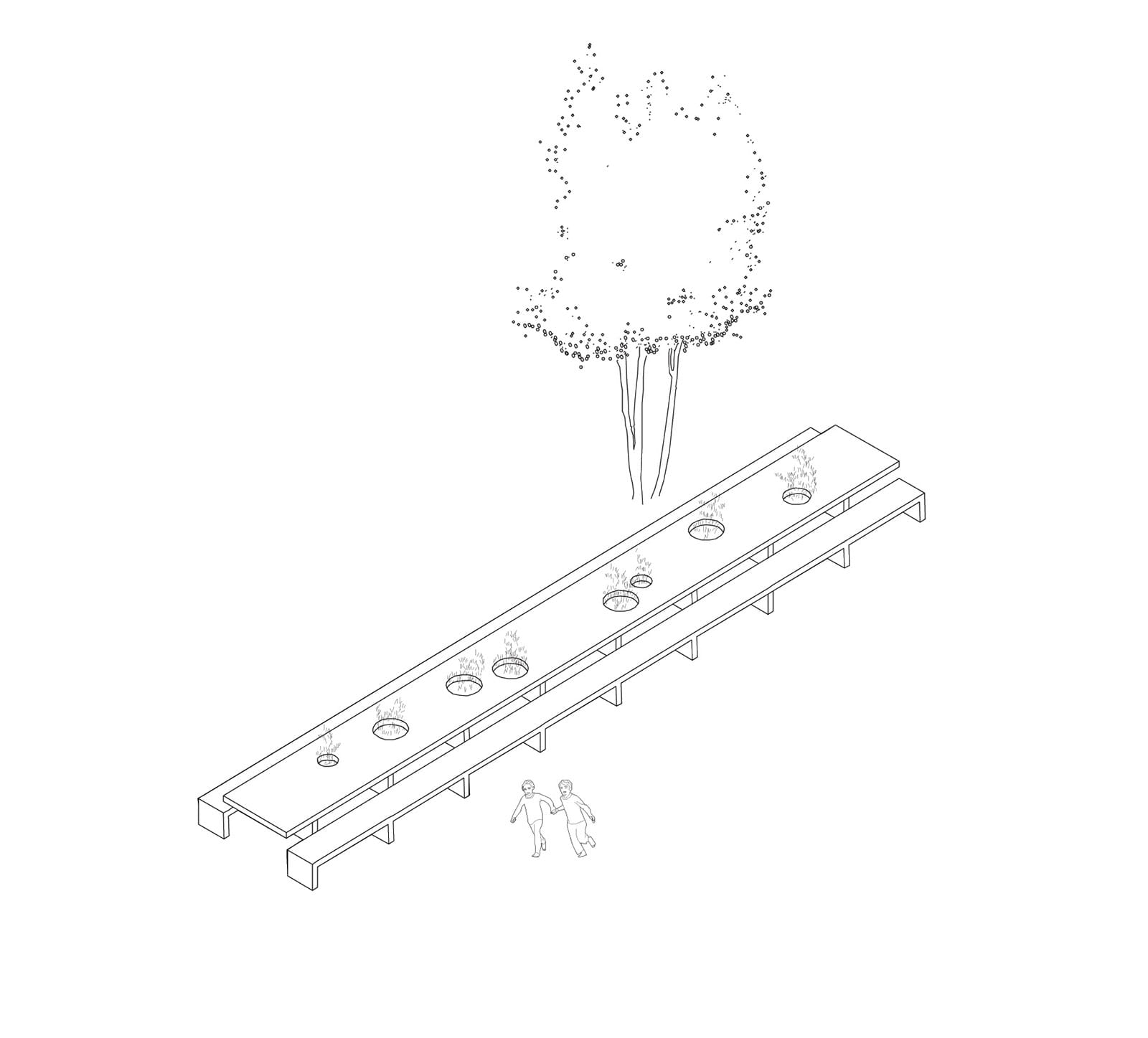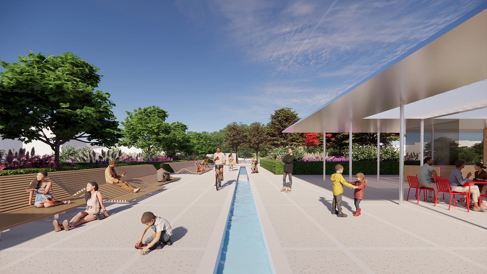 Through this continuous water path, the proposal aims both to clearly organize movement and to reinforce the perceptual coherence of public space, reintroducing water as a fundamental element of the urban experience.