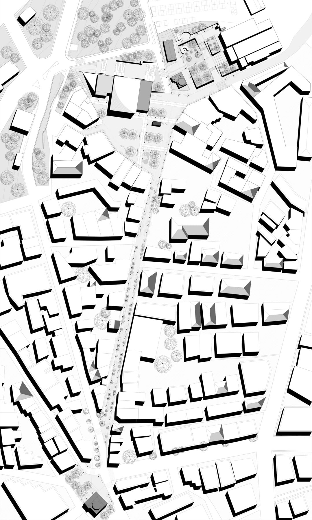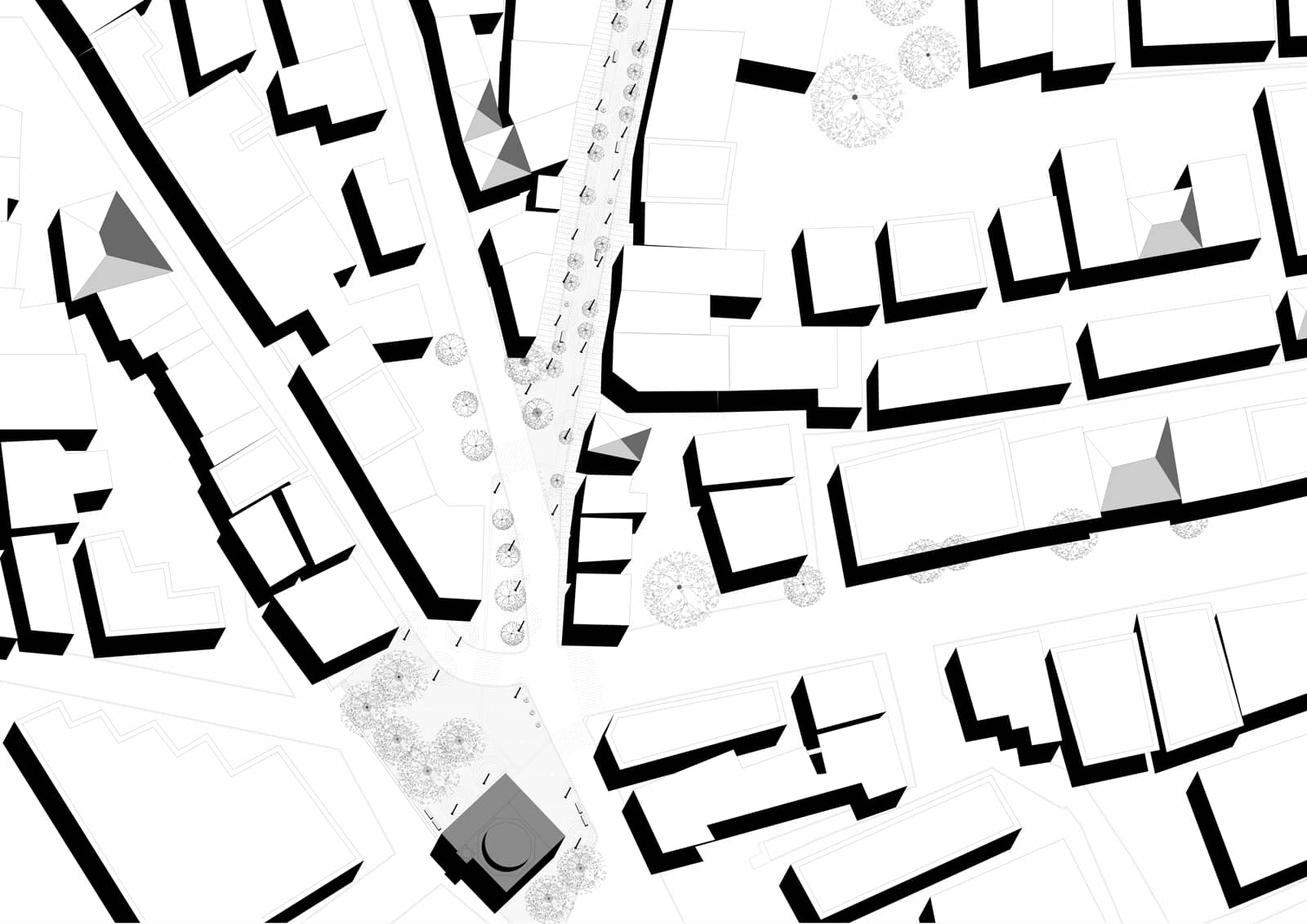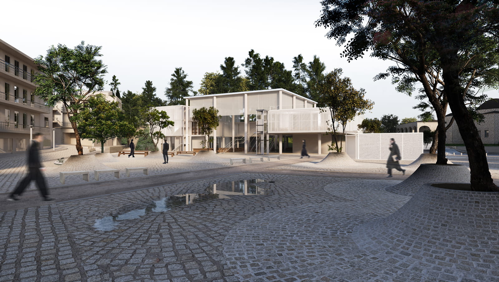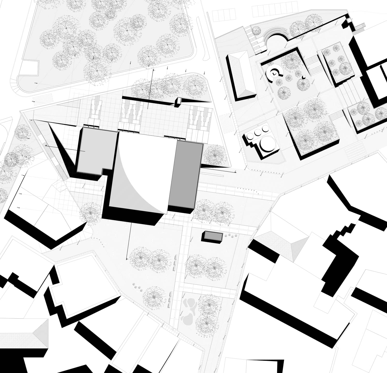 Existing buildings and open spaces are treated with a focus on coherence and flow. The entire design is a permeable, layered composition, with gentle transitions between hard and soft surfaces, vegetation, and shaded areas. This approach highlights the daily rhythms of urban life while ensuring multiple points of access and circulation.
