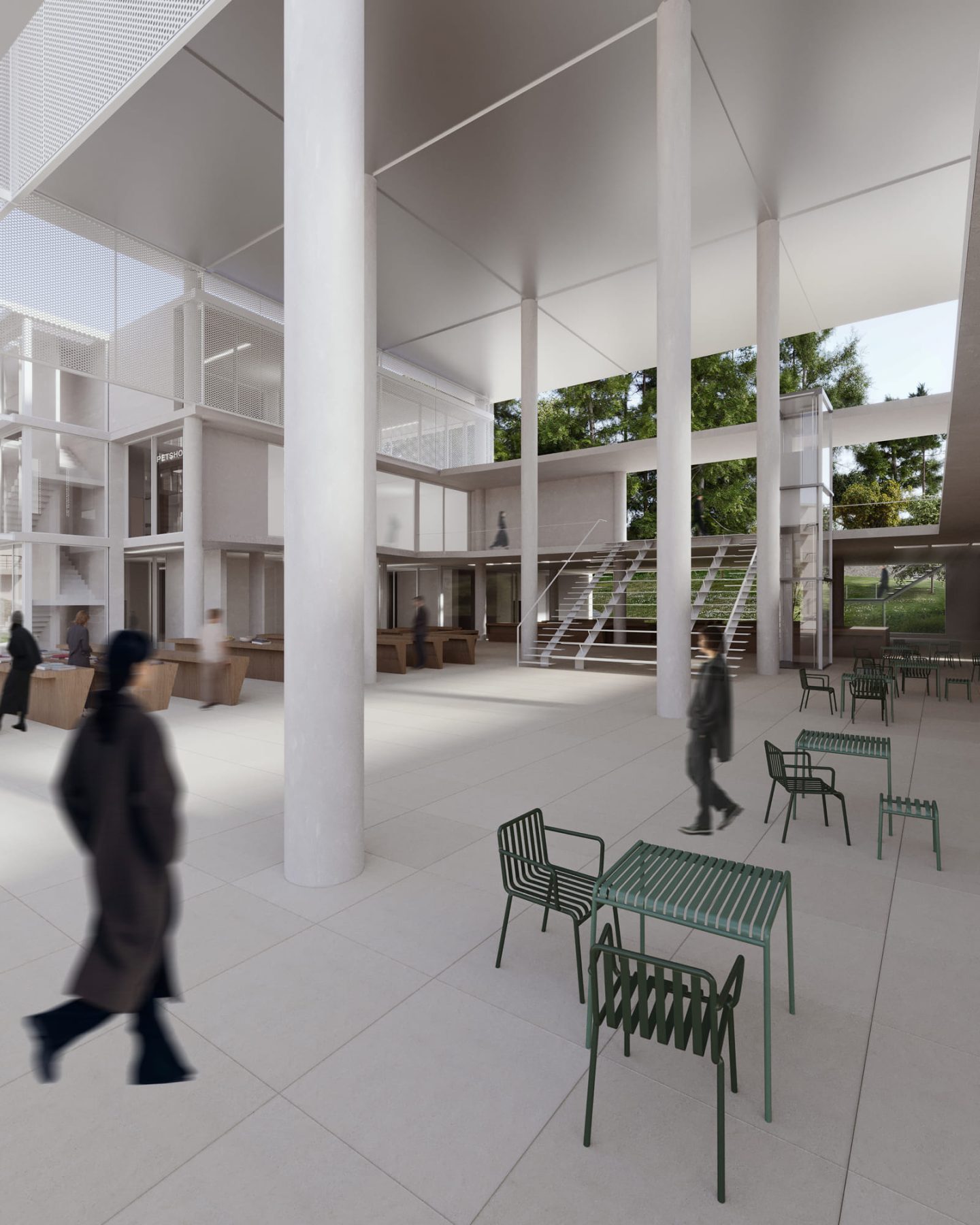 Η νέα Δημοτική Αγορά σχεδιάζεται ως μια ημιυπαίθρια αγορά τροφίμων, όπου η εναλλαγή μεταξύ κλειστών καταστημάτων και ανοικτών χώρων πλαισιώνει μια δημόσια εμπειρία.