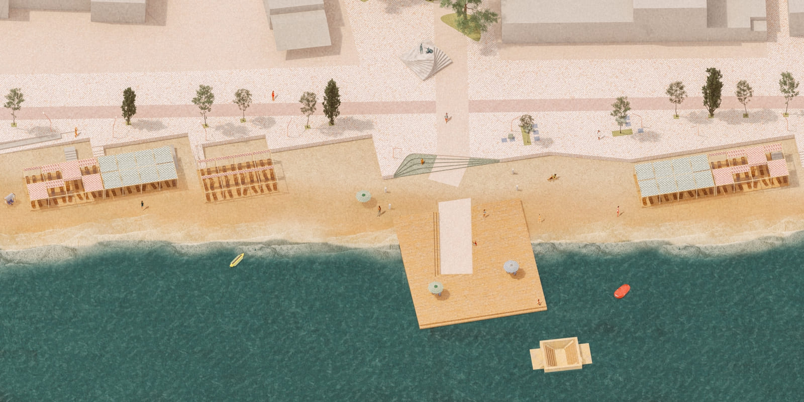 object-e develop a proposal for the redesign of the Kalamia coastline in Corinth, envisioning it as a multifunctional environment that can accommodate the needs of different communities and support diverse uses throughout the year. The project focuses on the design of a longitudinal promenade, the connection between the urban fabric and the shoreline through a network of public spaces, the organization of seasonal facilities, and the provision of cultural and sports infrastructures.