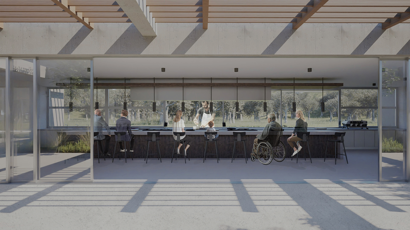 Το έργο βρίσκεται στην καρδιά ενός μεσογειακού ελαιώνα, ενός τοπίου βαθιά ριζωμένου στην πολιτιστική μνήμη, την ηρεμία και τη φροντίδα.